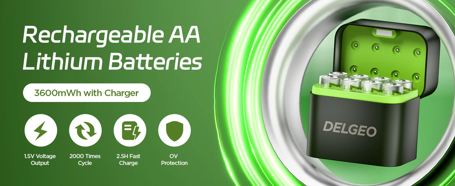 Delgeo AA Rechargeable Lithium Battery 1.5 V with Charging Case 3600 mWh Large Capacity