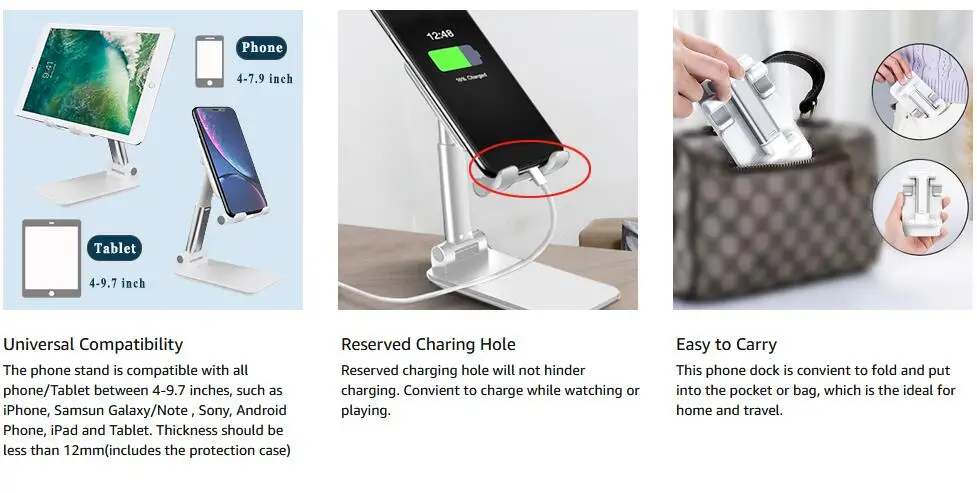 Desk Mobile Phone Holder Stand for iPhone, iPad, Xiaomi, Huawei