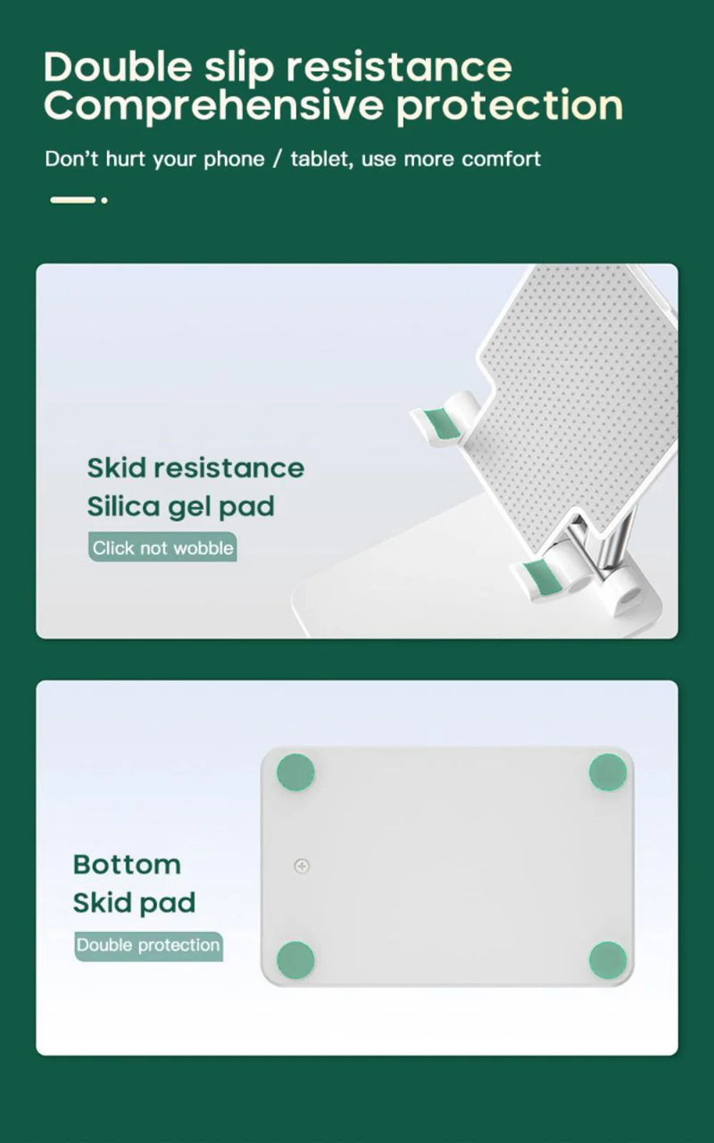 – Non-slip base and device grips provide secure placement, preventing accidental slips or falls.
