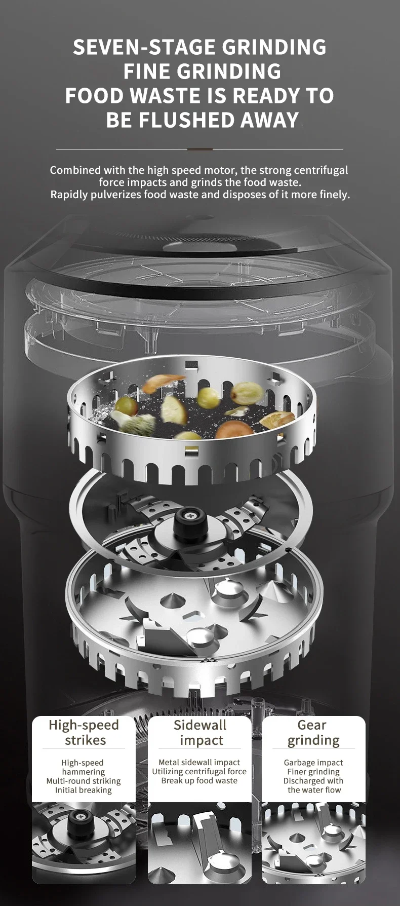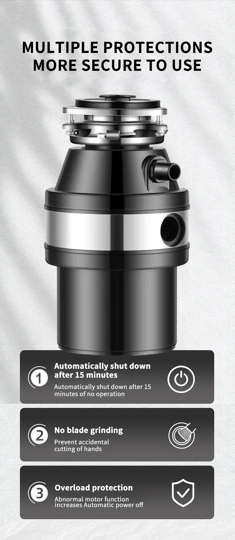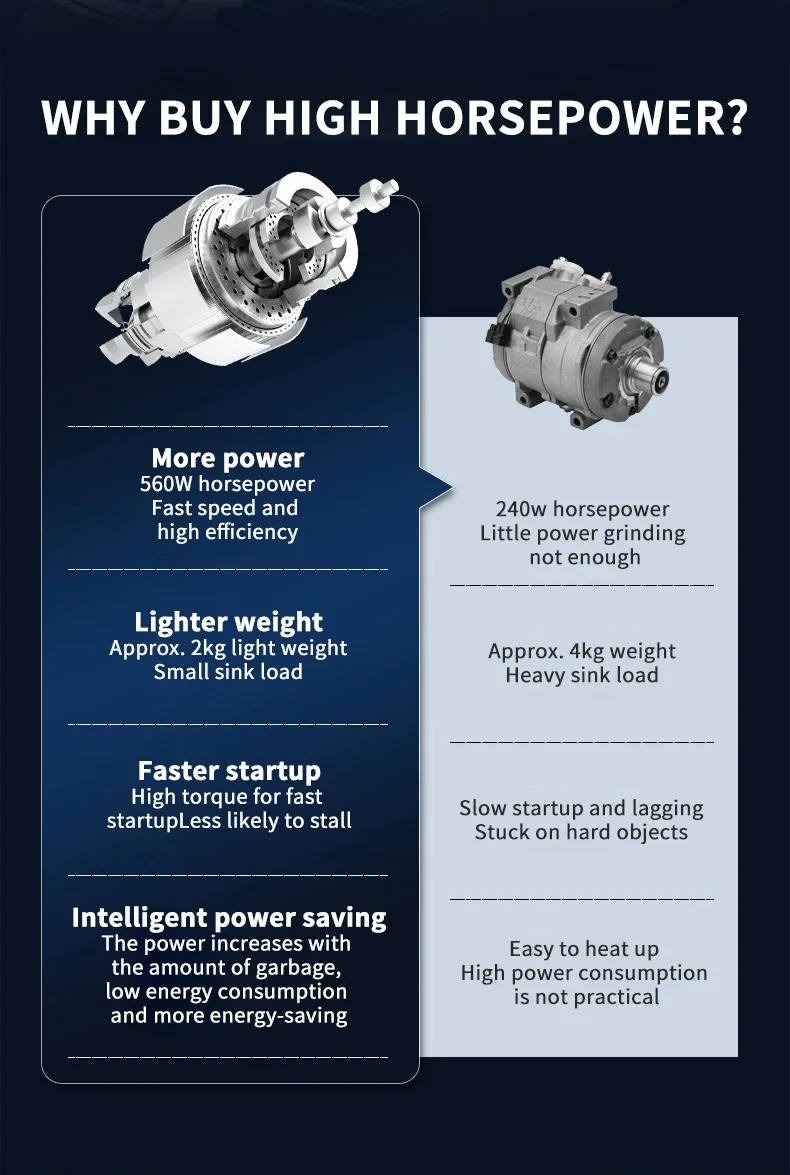 – Powerful 560W motor for efficient grinding of various food waste.