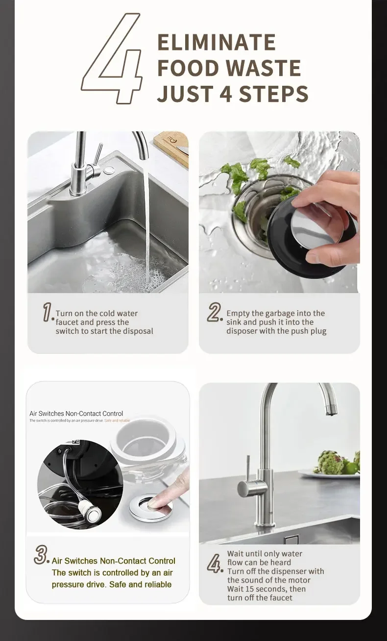 The DIVEDEER 560 W Garbage Disposal is more than just an appliance; it’s an investment in a cleaner, more efficient lifestyle. By quickly and effectively grinding food scraps, it eliminates unpleasant odors and reduces the amount of waste in your trash. This helps to minimize trips to the outside garbage can, especially during meal preparation. Furthermore, the reduction of food waste in landfills contributes to a more sustainable environment. Enjoy the convenience of a cleaner sink and a more hygienic kitchen, all while doing your part for the planet.