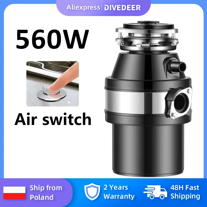 Constructed with high-quality stainless steel grinding components, the DIVEDEER 560 W is designed for durability and longevity. The robust motor is protected by an overload feature, ensuring reliable performance for years to come. Simple to install and easy to use, this garbage disposal is the perfect addition to any modern kitchen. Ships directly from Poland, ensuring quality and craftsmanship.