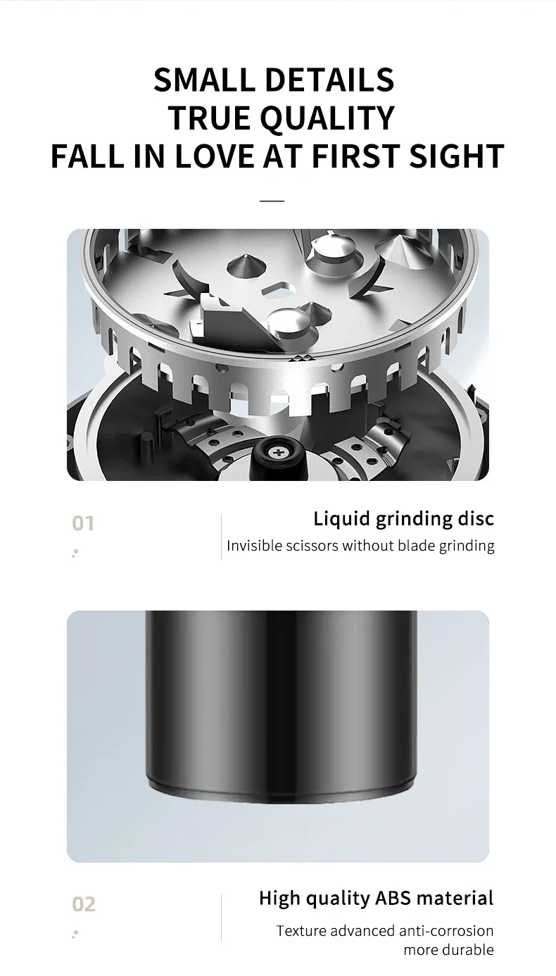 – Durable stainless steel grinding components for long-lasting performance.