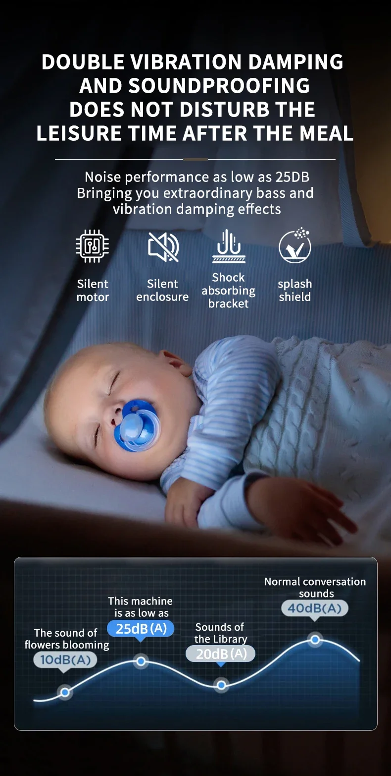 – Reduced noise operation for a quieter kitchen environment.