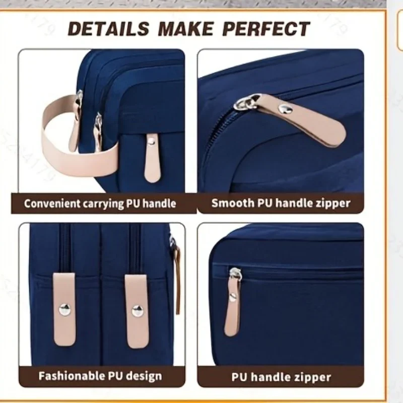 – Multiple compartments and pockets to neatly organize grooming essentials, cosmetics, and small accessories