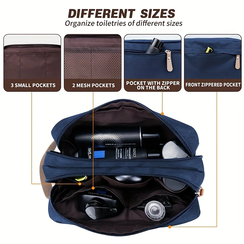 This grooming bag is the ideal companion for men who value organization and style. Its double-layer structure allows you to separate items for quick access, reducing clutter and saving time. Whether you are traveling for business or managing daily personal care items, this bag keeps everything secure and easily reachable. The personalized embroidery option makes it a perfect gift or a distinctive personal item that stands out in a professional environment.