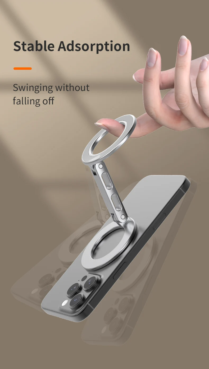 Crafted from high-quality materials, the ring holder boasts durability and long-lasting performance. The surface is smooth to the touch and resistant to daily wear, making it easy to clean with a soft cloth. Its magnetic components are designed to work harmoniously with MagSafe chargers and accessories without interference. Choose from a variety of elegant colors to match your personal style and device aesthetics, making this ring holder not only practical but also a fashionable addition to your tech gear.