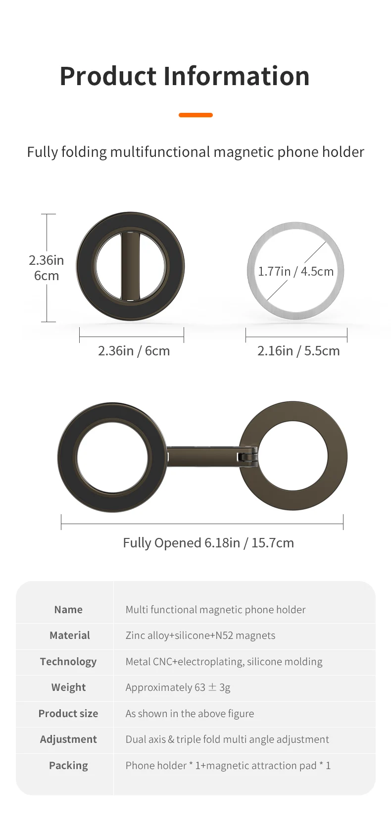 – Double magnetic ring design for enhanced grip and stability