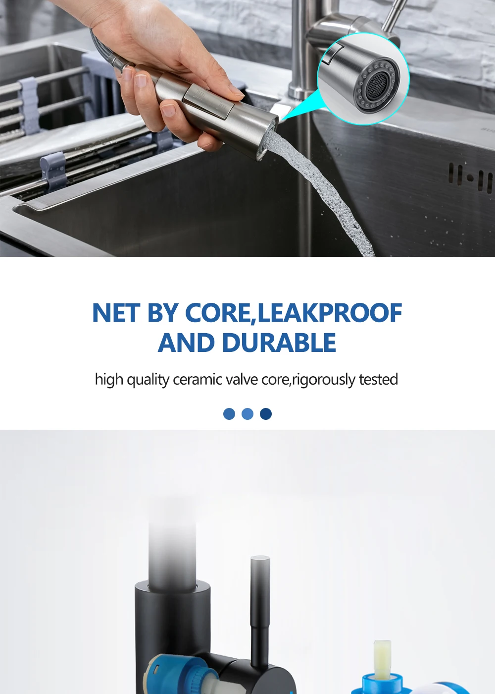 • Dual Functionality Pull-Out Sprayer: Effortlessly switch between a steady stream and a powerful spray, perfect for washing dishes, rinsing vegetables, or cleaning the sink.