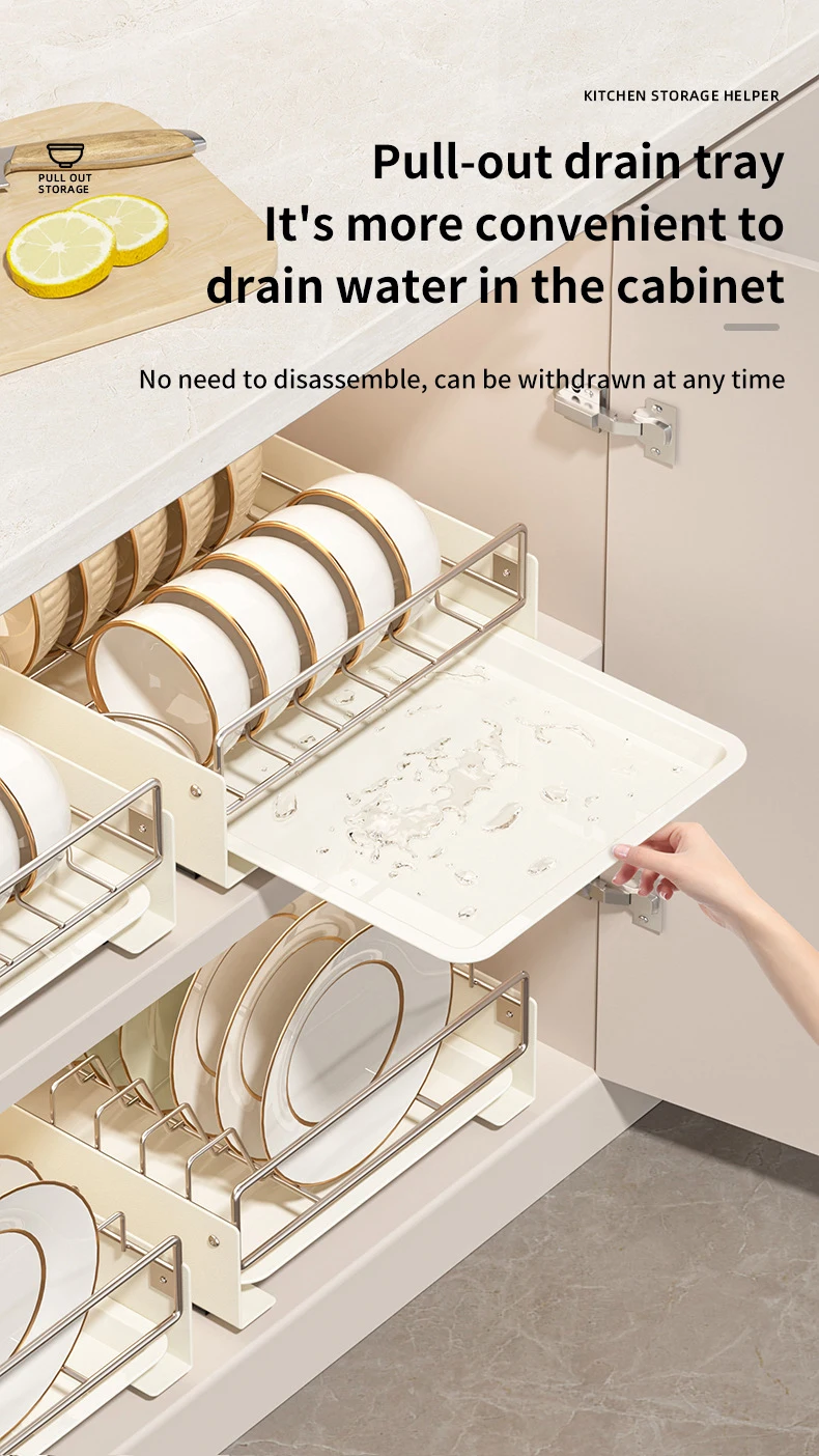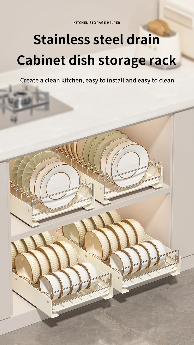Tired of cluttered countertops and overflowing dish racks? Introducing the Drain Pull Out Dish Rack, the perfect solution for streamlining your kitchen and maximizing space. This innovative dish rack seamlessly integrates into your existing cabinets, providing a convenient and organized storage solution for your bowls, plates, and other kitchen essentials. Say goodbye to messy drying racks and hello to a clean and efficient kitchen!