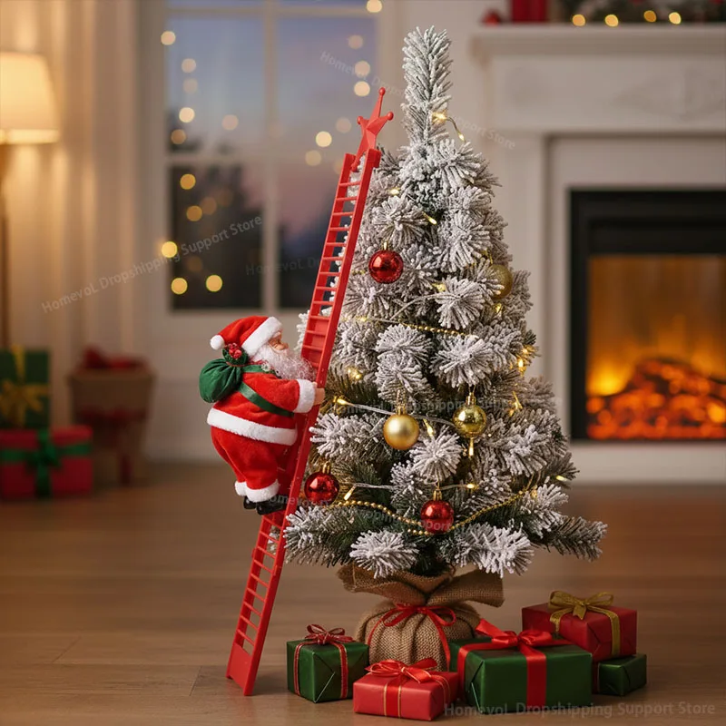 Introducing the enchanting Electric Climbing Ladder Santa Claus, the perfect animated ornament to elevate your holiday décor. This delightful Christmas decoration brings a touch of whimsy and joy to any home, captivating both children and adults alike with its charming musical performance. Watch as Santa merrily ascends and descends his ladder, filling your space with festive spirit and the joyous sounds of the season.