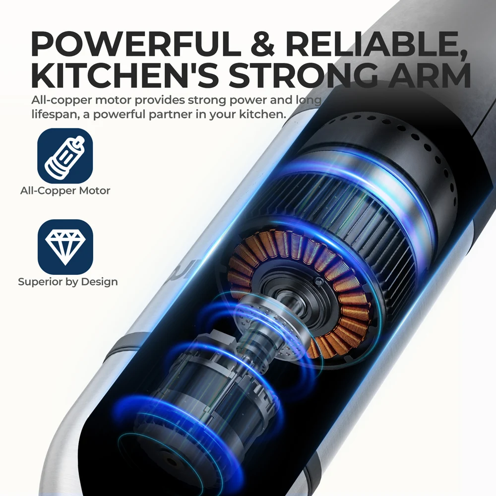 – 6-in-1 functionality: Blending, chopping, whisking, pureeing, mixing, and frothing.