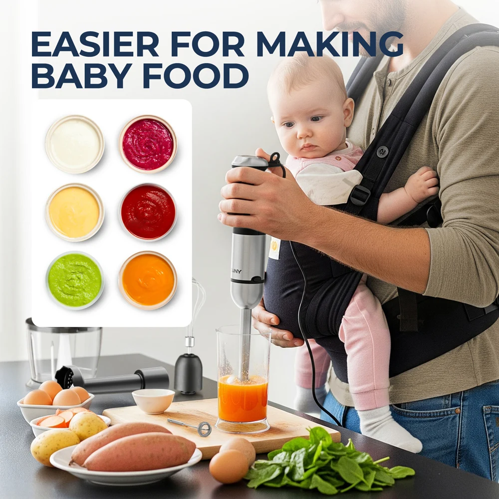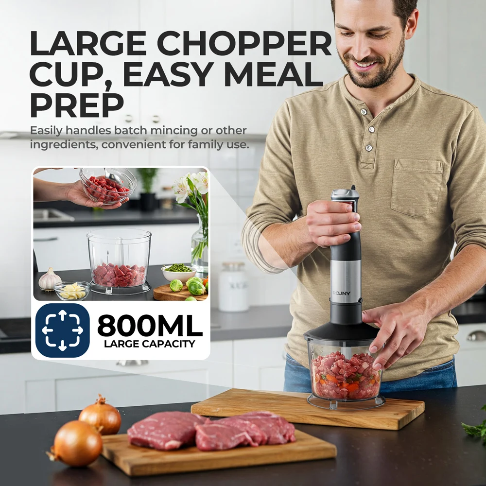 This hand blender is more than just a blending tool; it’s a complete kitchen solution. Imagine effortlessly creating smooth and creamy soups, delicious homemade sauces, or perfectly whipped cream in minutes. The included attachments allow you to chop vegetables with ease, puree baby food to a silky consistency, and even froth milk for your favorite coffee beverages. Say goodbye to cluttered countertops and hello to streamlined food preparation with this all-in-one appliance.