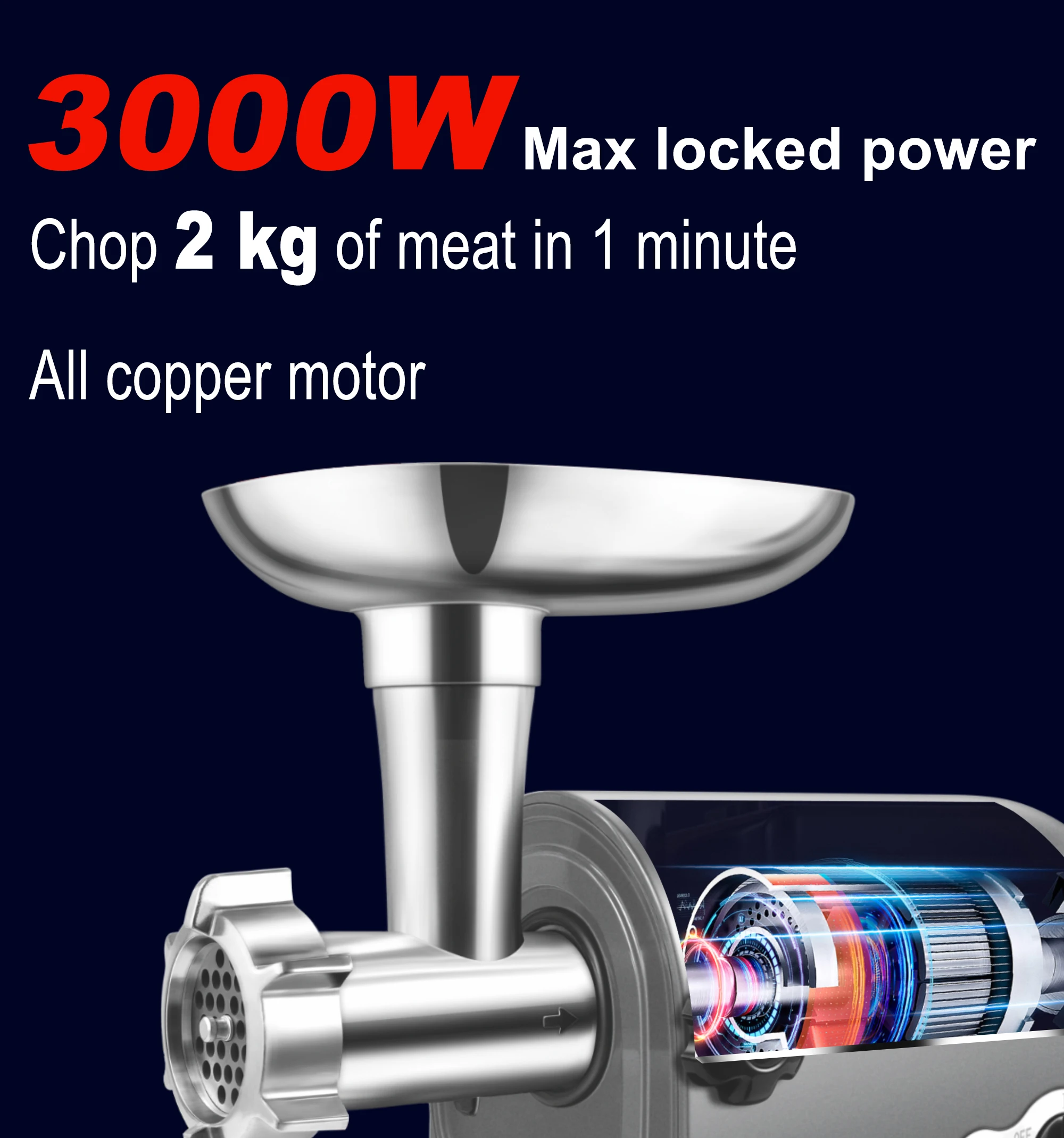 – Powerful 3000W Max Motor: Delivers exceptional grinding power for even tough cuts of meat, ensuring a smooth and consistent texture every time.