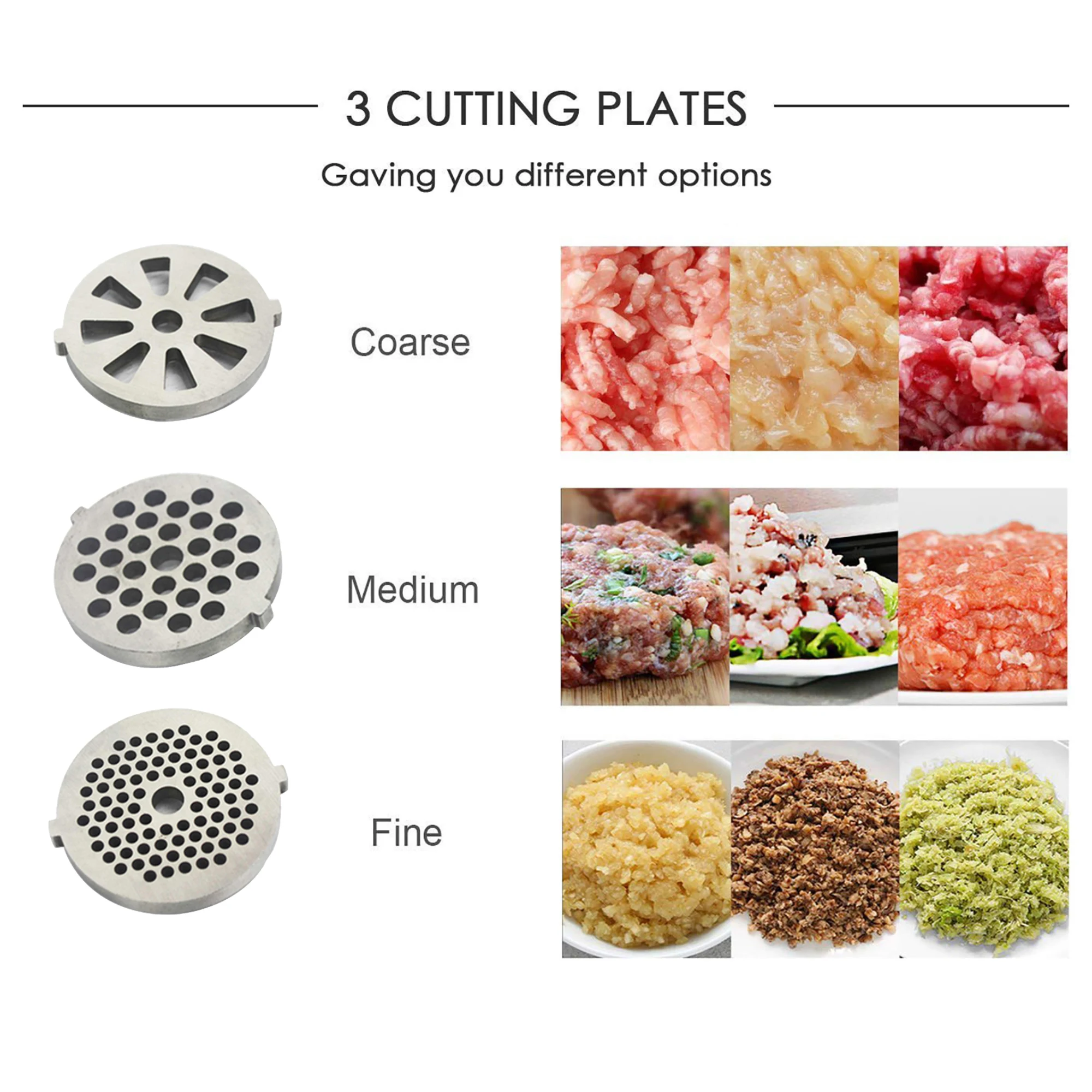 – Multiple Cutting Plates: Includes various sizes of cutting plates to achieve your desired grind consistency, from fine to coarse, catering to all your recipes.