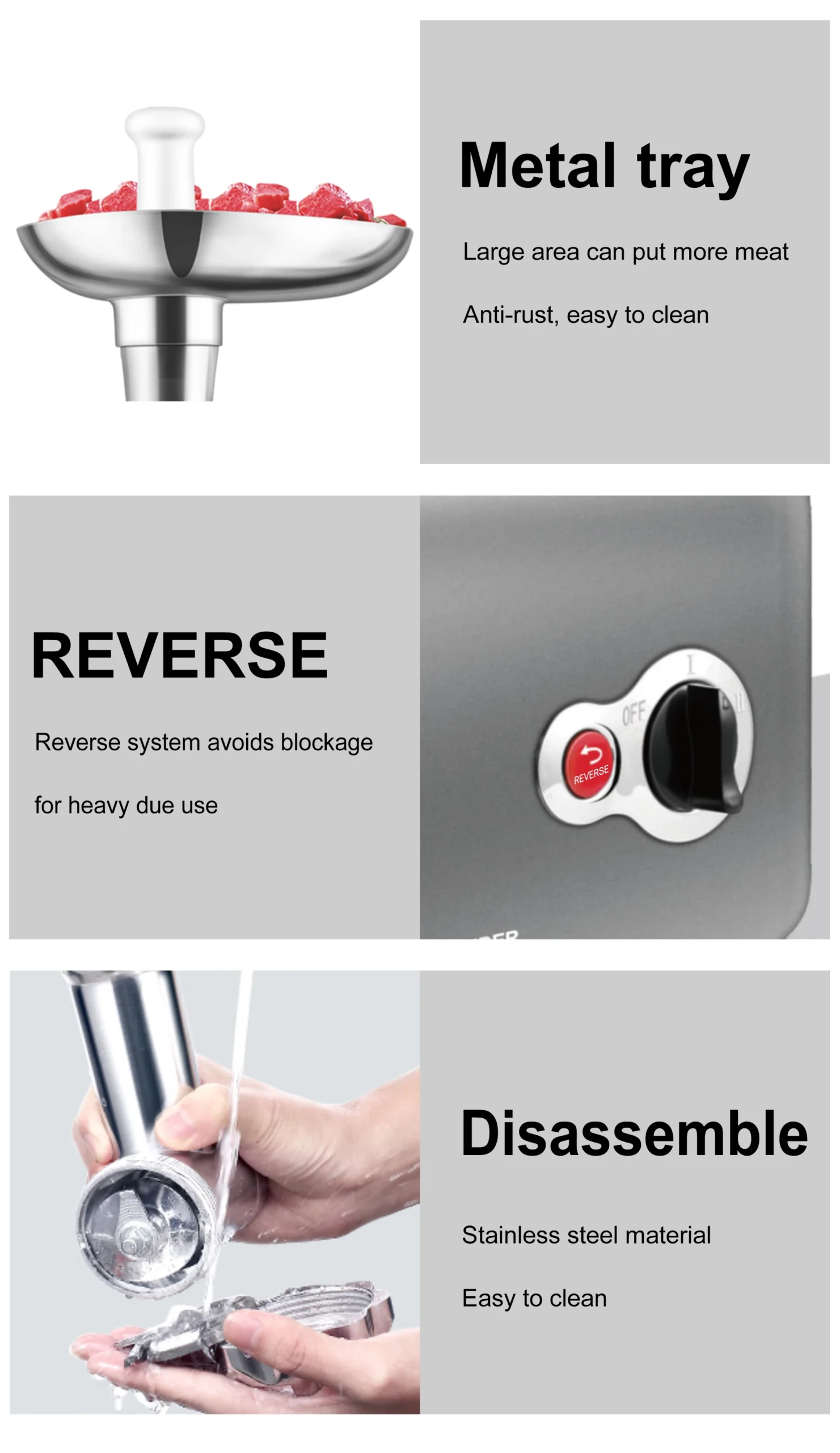– High-Quality Stainless Steel Blades: Engineered for sharpness and precision, these blades effortlessly cut through meat, minimizing resistance and maximizing efficiency.
