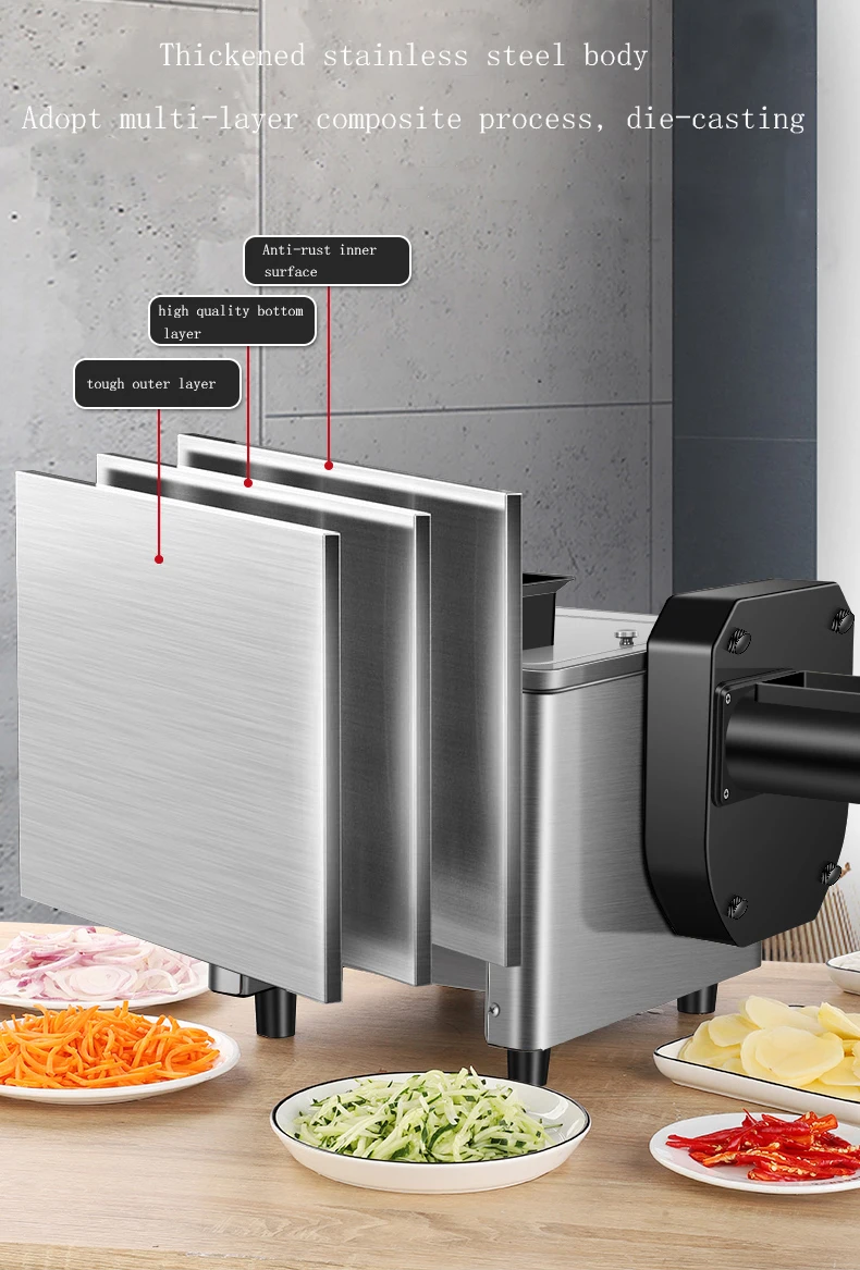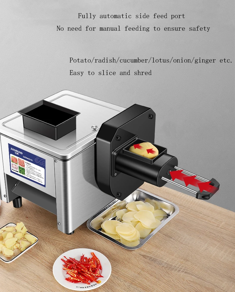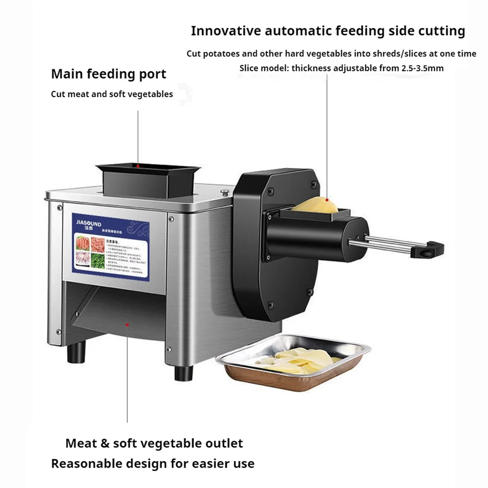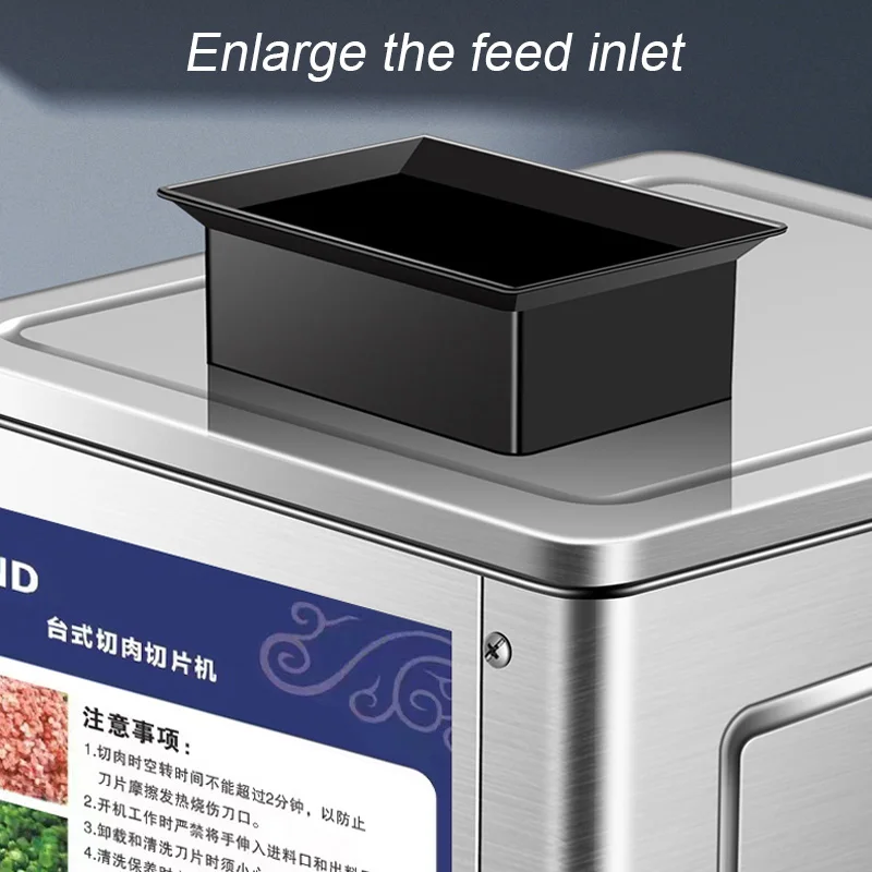 **Usage:** Simply select the desired blade thickness, secure your ingredients, and let the powerful motor do the work. It’s ideal for preparing ingredients for grilling, braising, stir-frying, charcuterie boards, and much more. The ergonomic design ensures comfortable operation, while the compact footprint makes it suitable for any kitchen size.