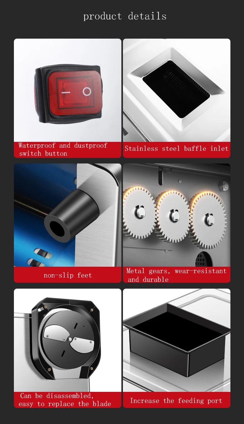 – Versatile Functionality: Beyond slicing, this machine excels at grinding meat, cutting fish into fillets, and finely shredding onions and vegetables, making it an all-in-one kitchen essential.