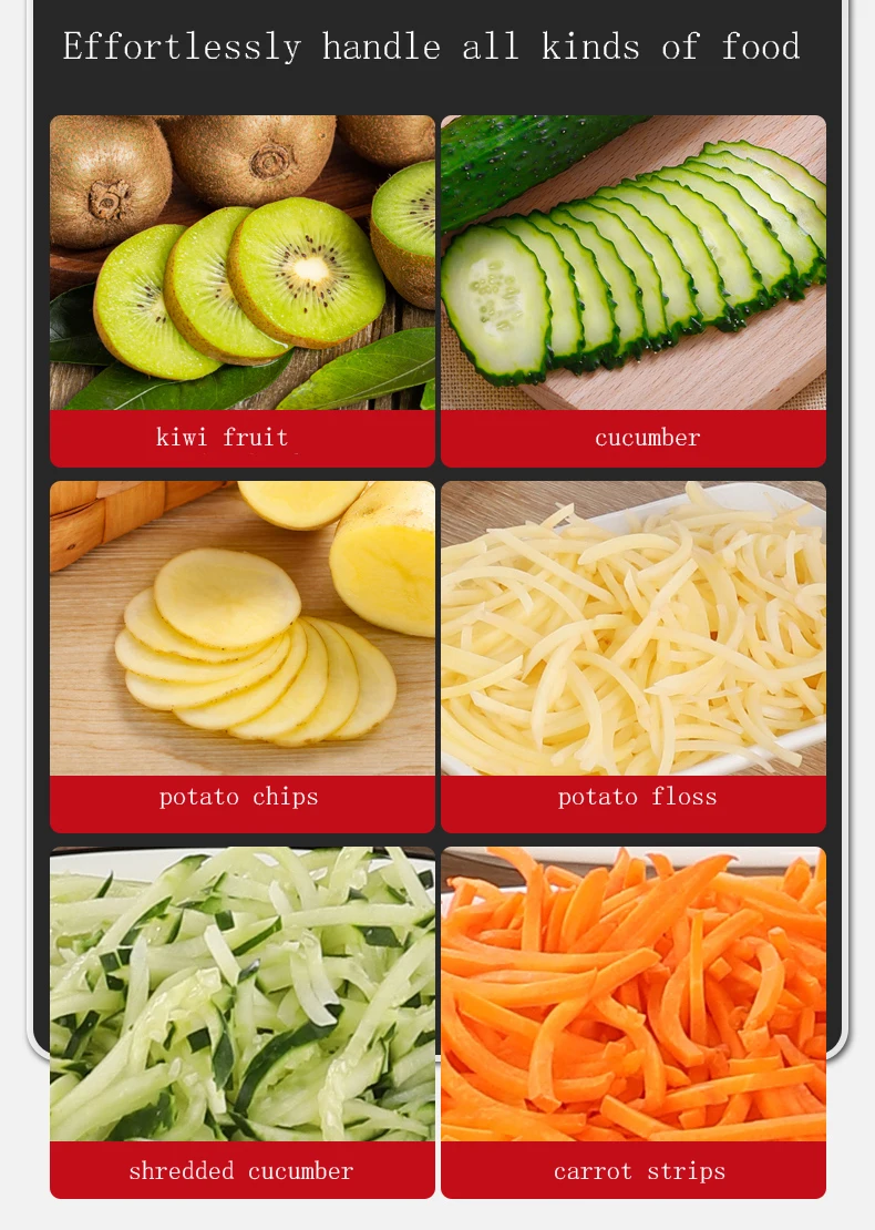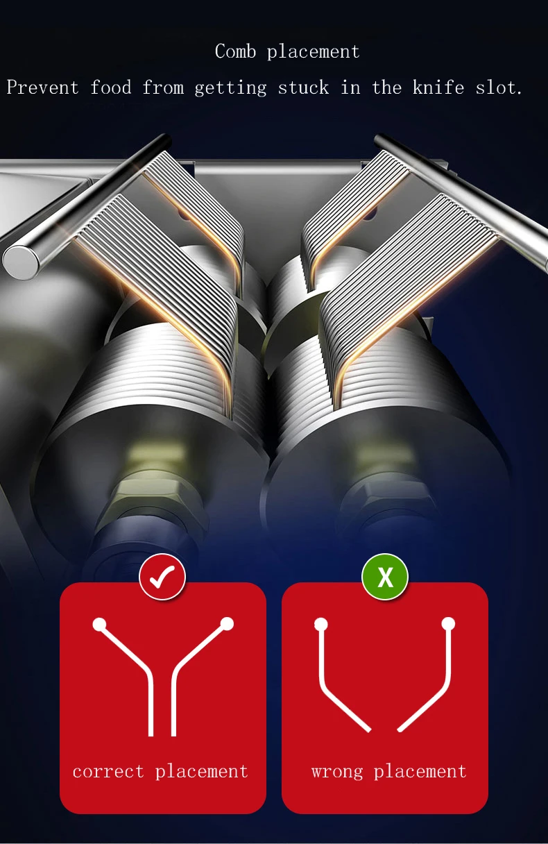 – Multiple Blade Options: Available in a range of precise slicing thicknesses (2.5mm, 3.5mm, 5mm, 7mm, 10mm) for both Type A and Type B blades, allowing for ultimate customization of your ingredients.
