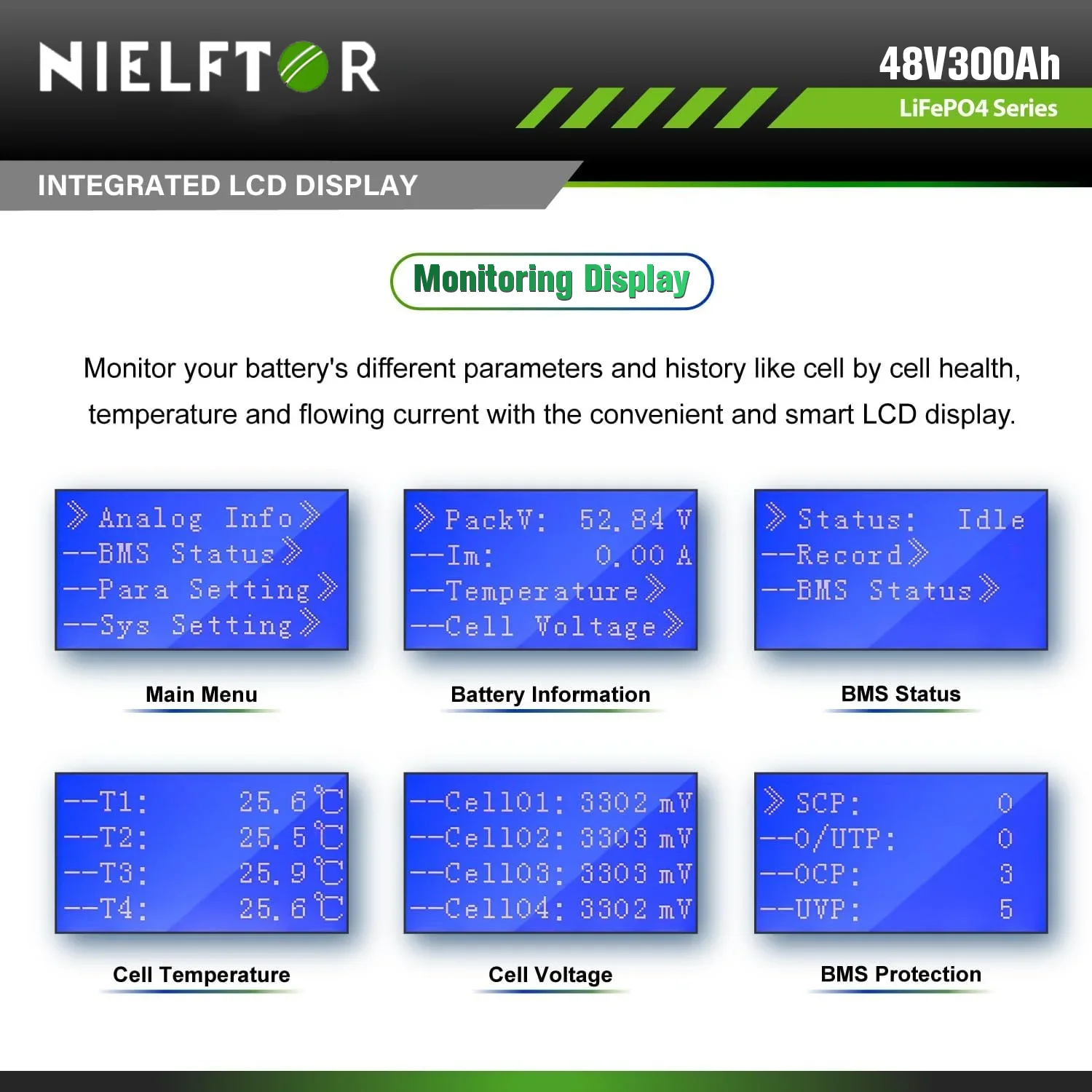 – Lithium Iron Phosphate (LiFePO4) chemistry offers enhanced safety, thermal stability, and environmental friendliness
