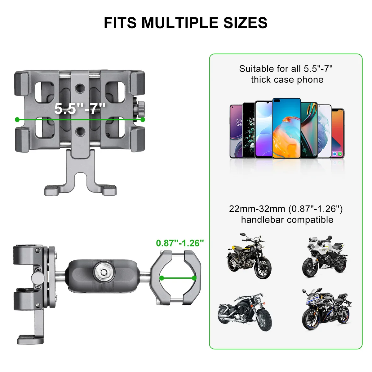 The FANAUE mount is made from premium aluminum alloy, combining lightweight construction with superior toughness. Its corrosion-resistant finish ensures long-lasting performance even in harsh environments. To maintain optimal function, clean the holder with a damp cloth and avoid exposure to harsh chemicals. Compatible with a wide range of electronics, this mount is a versatile accessory for riders seeking durability and convenience.