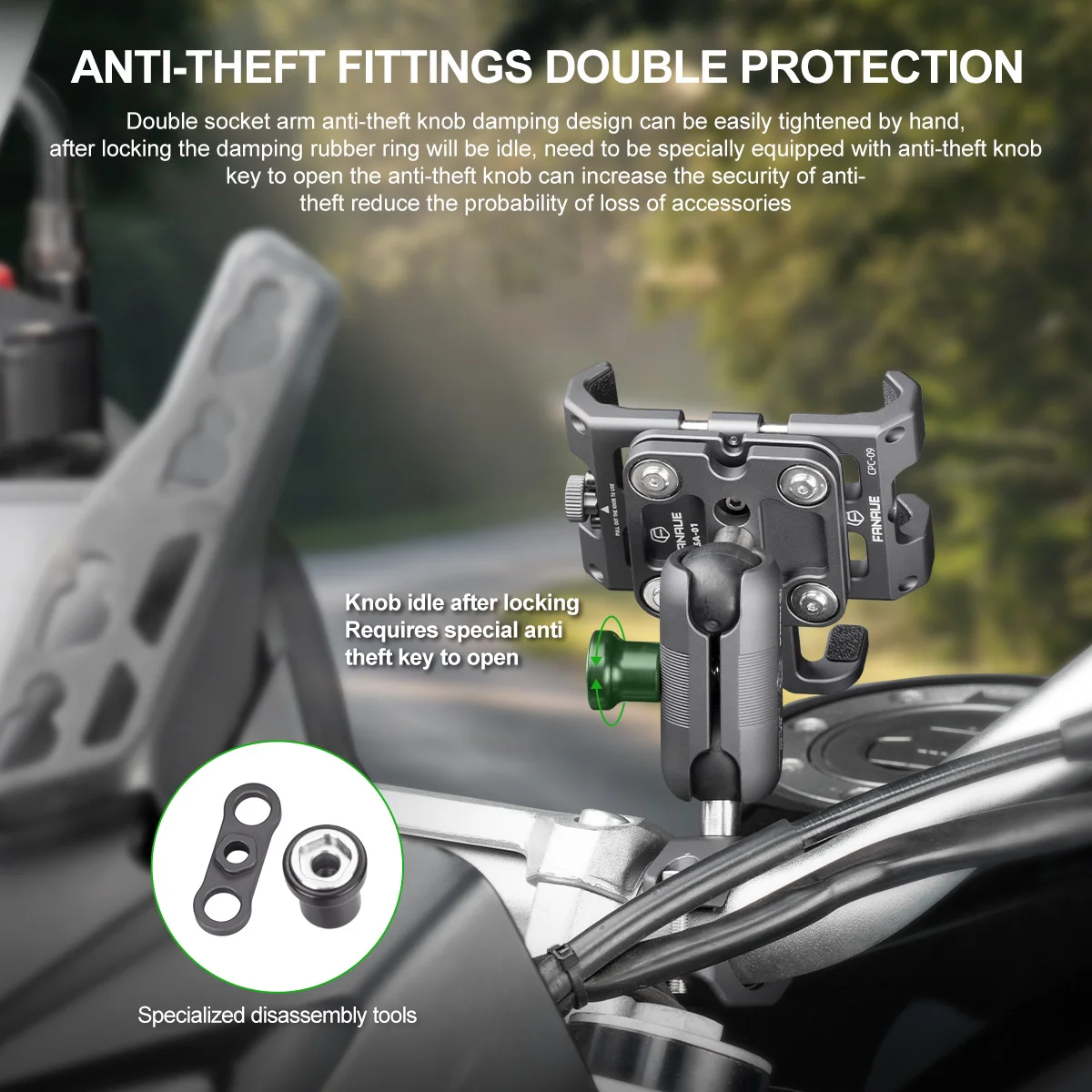 FANAUE Motorcycle Bike Phone Holder Mount Aluminum Alloy with Vibration Dampener