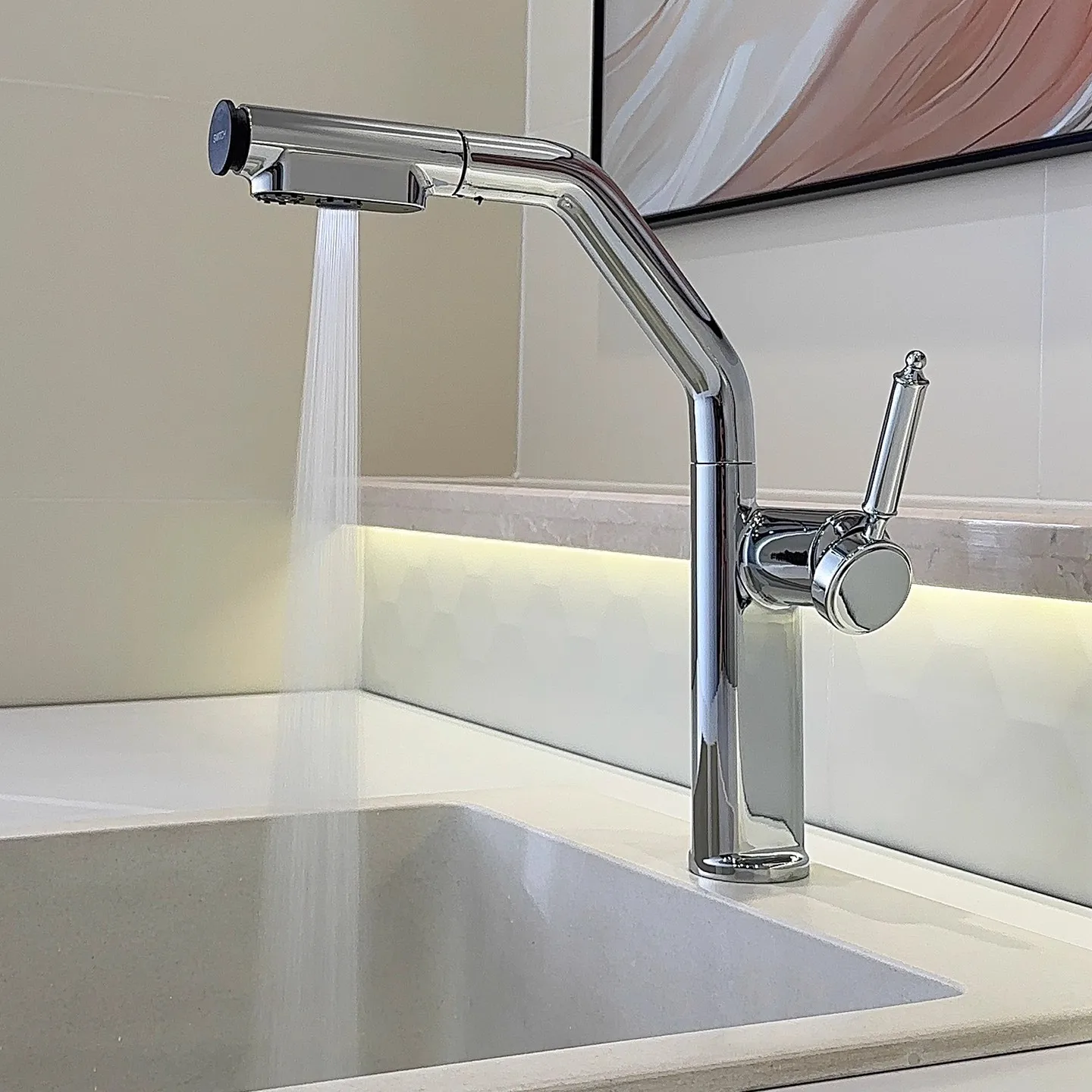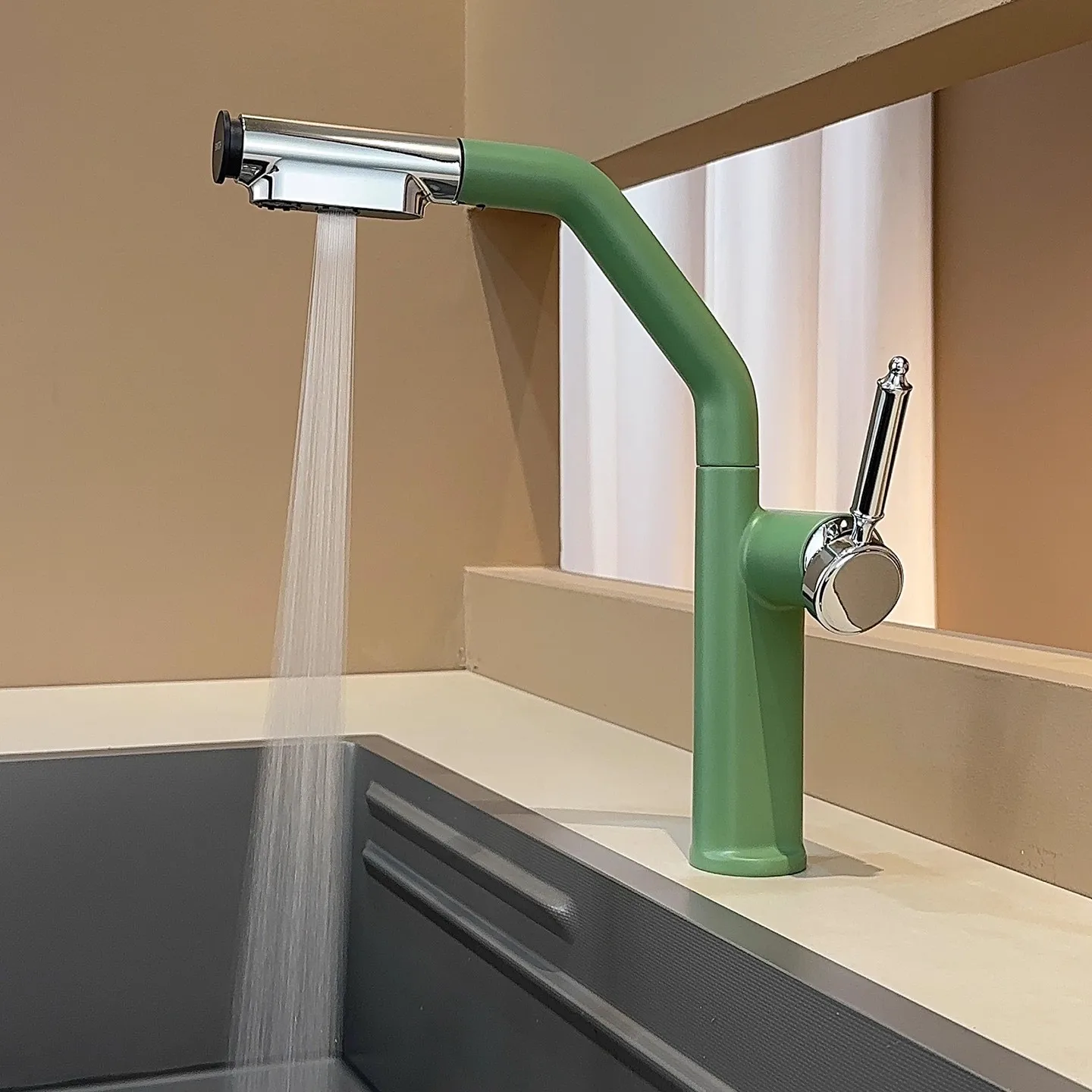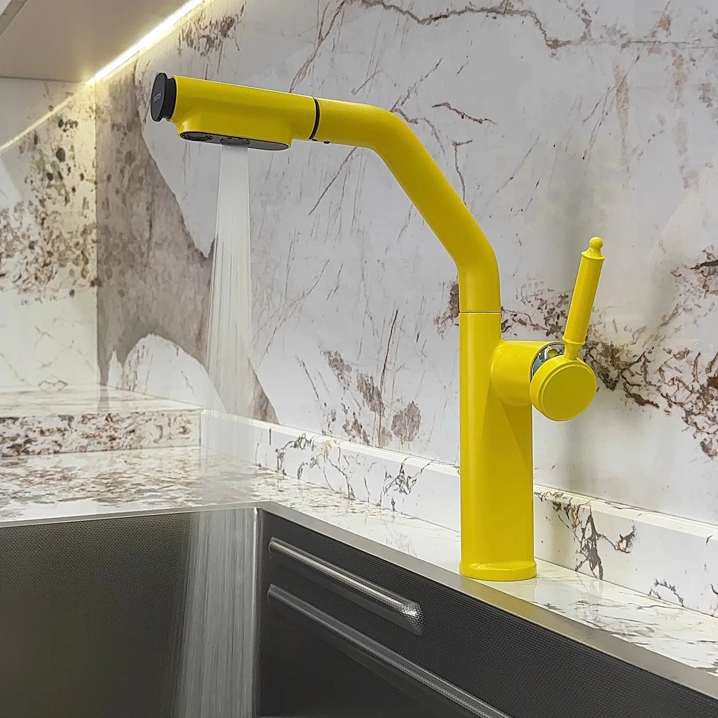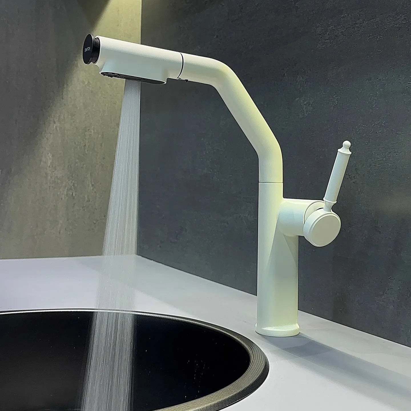 The Fashion Kitchen Faucet is engineered to simplify your daily kitchen routines while adding a touch of sophistication. Its robust brass construction guarantees years of reliable service, resisting wear and tear from everyday use. The extensive color selection allows you to personalize your kitchen and create a cohesive, stylish look. Imagine the ease of rinsing large pots and pans with the extended reach of the pull-out spray, or effortlessly cleaning vegetables with precise water control. The 360-degree rotation ensures no spot is out of reach, making dishwashing and sink maintenance a breeze. This faucet is ideal for busy families, passionate home cooks, and anyone who appreciates both form and function in their kitchen appliances.
