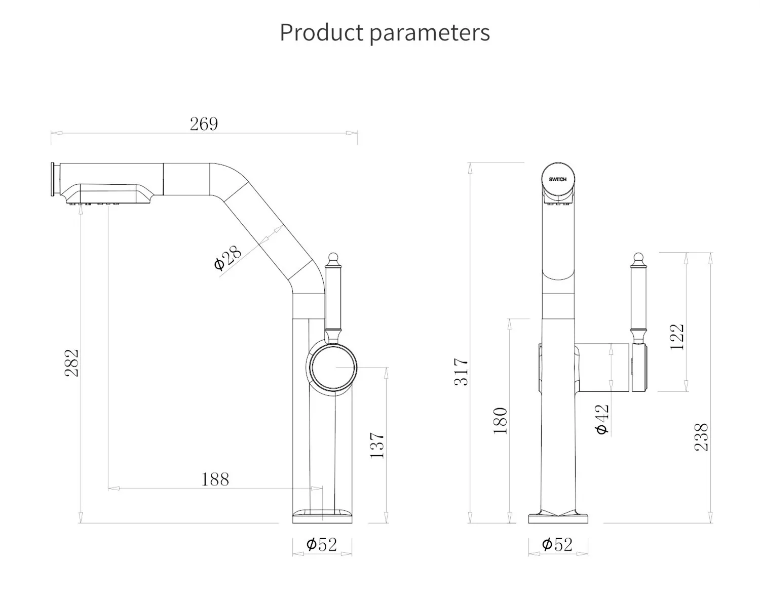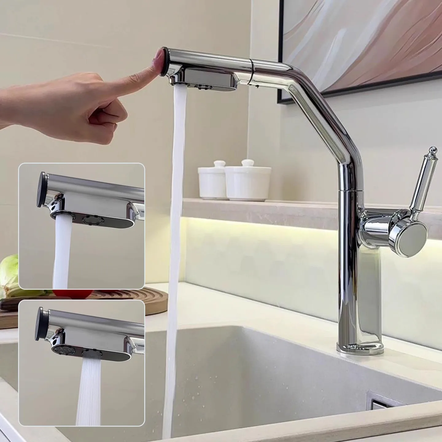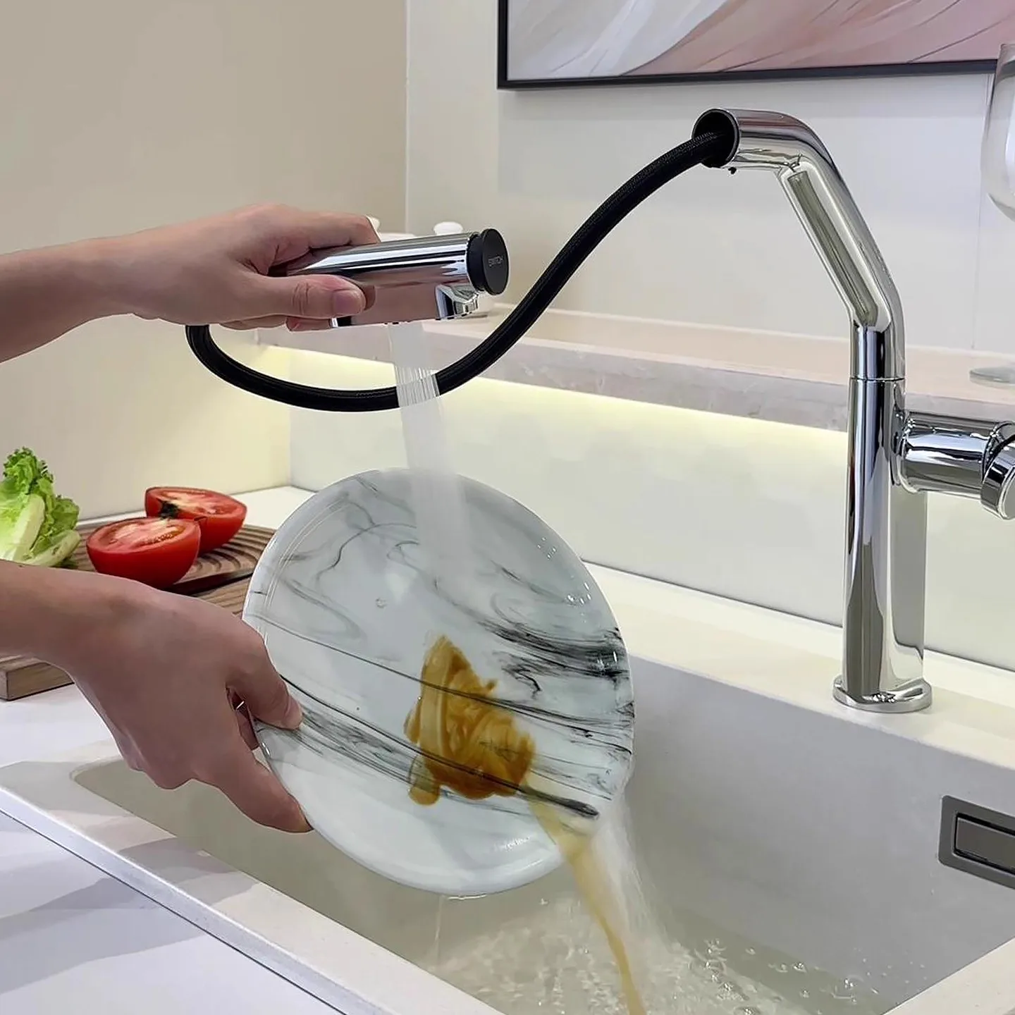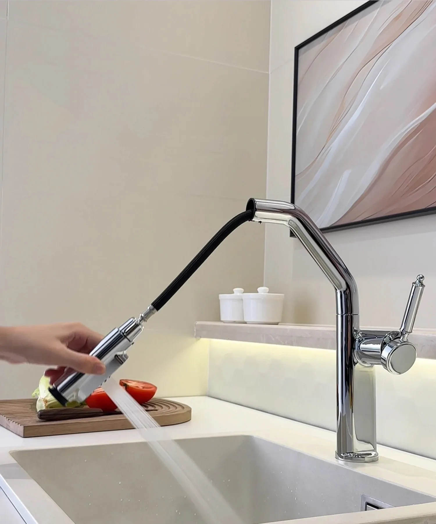The Fashion Kitchen Faucet is engineered to simplify your daily kitchen routines while adding a touch of sophistication. Its robust brass construction guarantees years of reliable service, resisting wear and tear from everyday use. The extensive color selection allows you to personalize your kitchen and create a cohesive, stylish look. Imagine the ease of rinsing large pots and pans with the extended reach of the pull-out spray, or effortlessly cleaning vegetables with precise water control. The 360-degree rotation ensures no spot is out of reach, making dishwashing and sink maintenance a breeze. This faucet is ideal for busy families, passionate home cooks, and anyone who appreciates both form and function in their kitchen appliances.