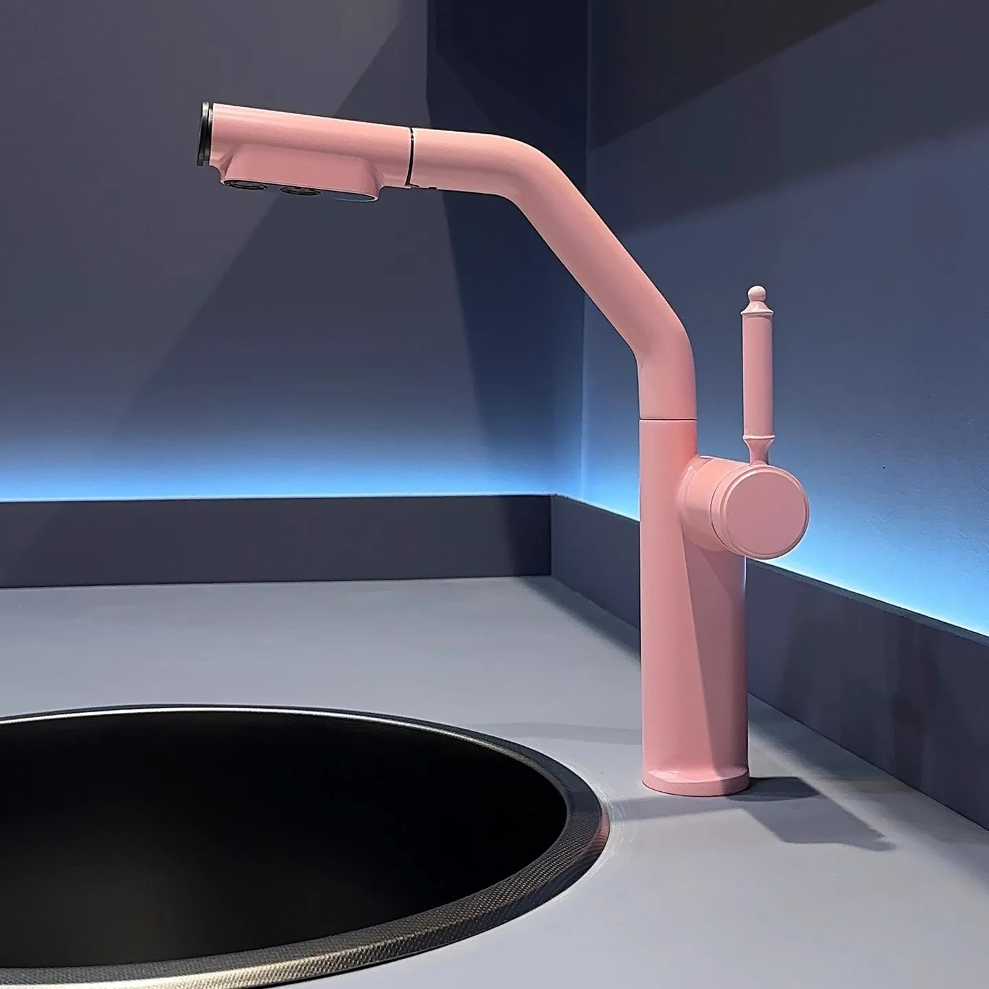 Introducing the Fashion Kitchen Faucet, a stunning blend of modern aesthetics and unparalleled performance designed to transform your kitchen into a culinary haven. This premium mixer tap seamlessly integrates hot and cold water functions with a versatile pull-out spray, offering unparalleled convenience and a touch of vibrant elegance. Available in a spectrum of captivating colors including green, white, yellow, pink, and a striking red chrome, alongside classic chrome, this faucet is more than just a utility; it’s a statement piece that complements any kitchen decor.