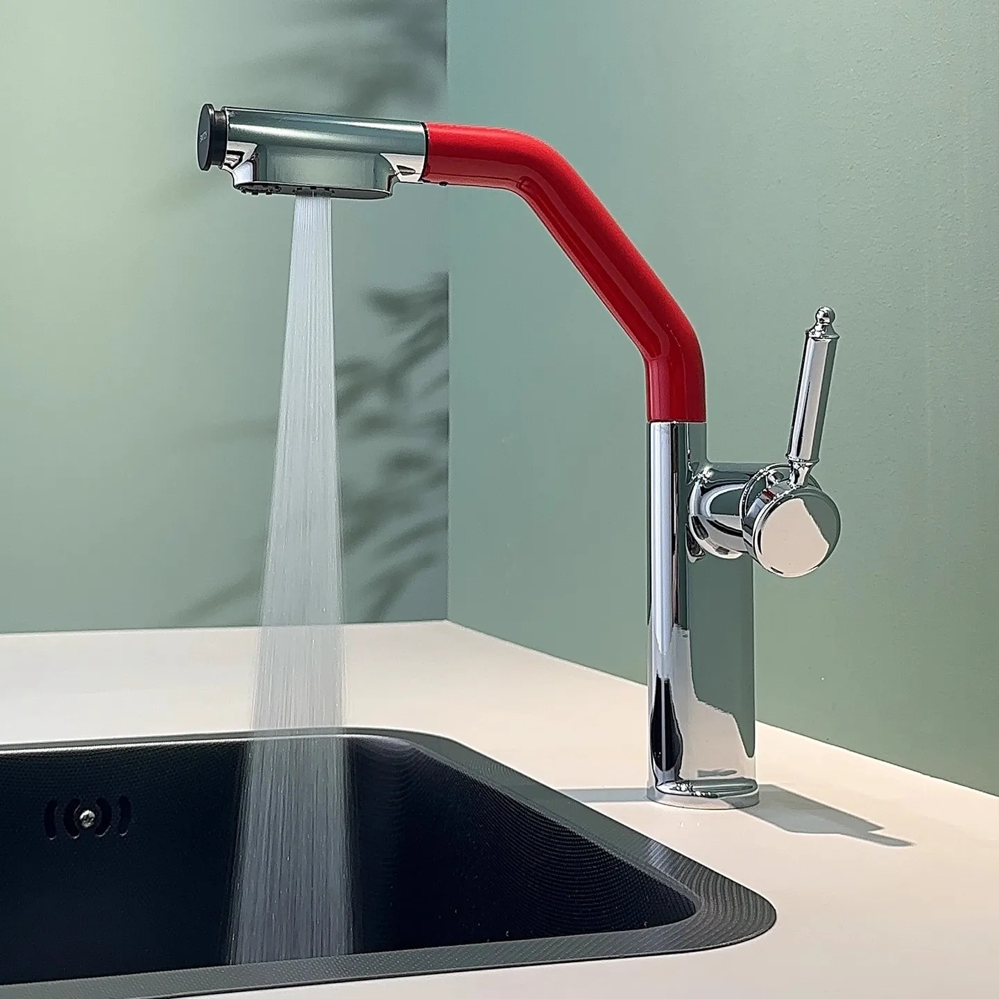 Fashion Kitchen Faucet Rotation Hot and Cold Brass Functions Sink Faucet Mixer Tap Chrome Red Pull Out Sink Mixer