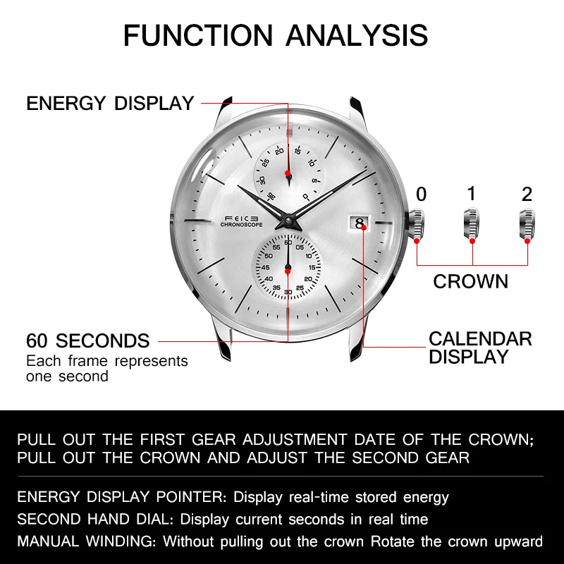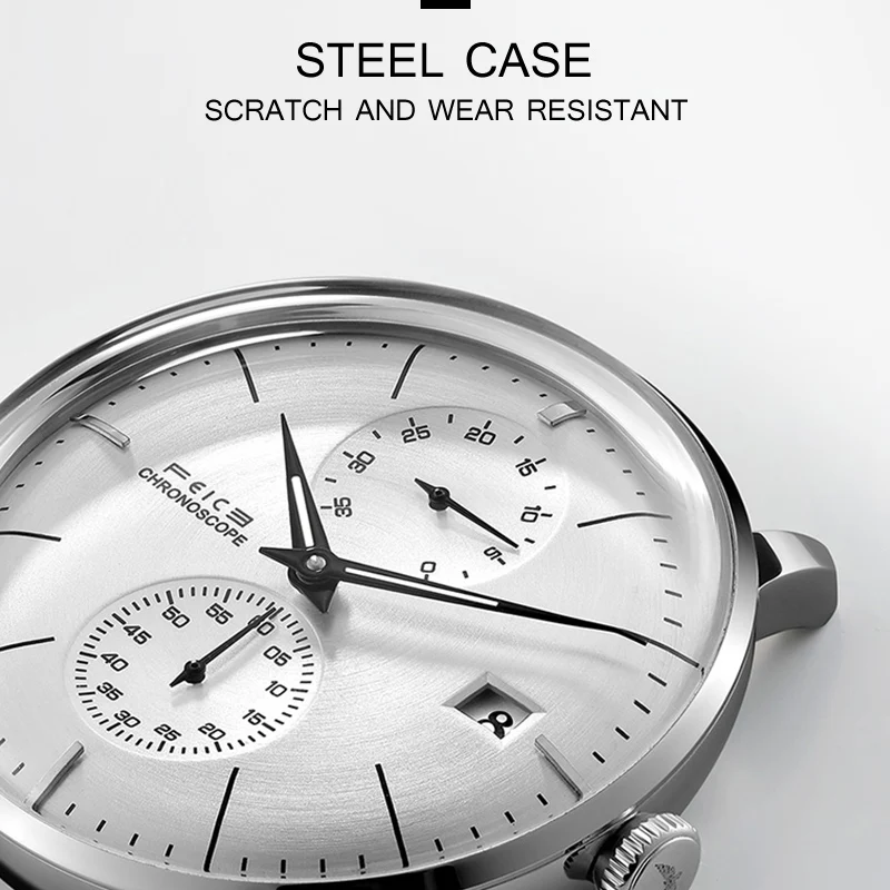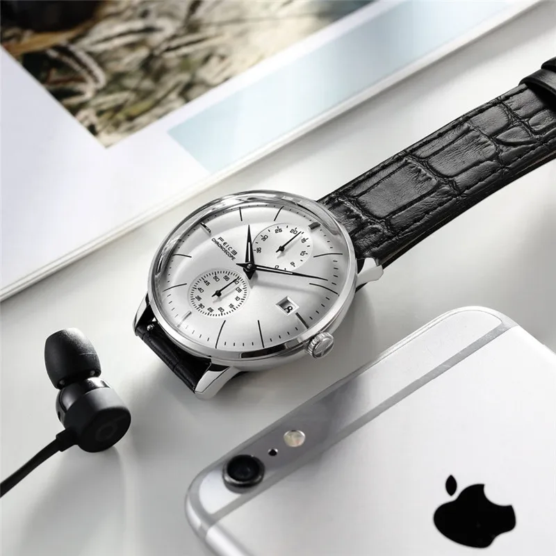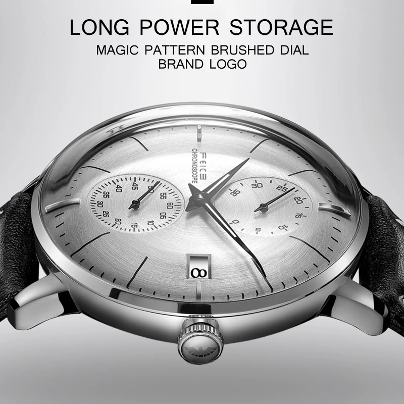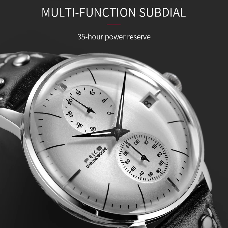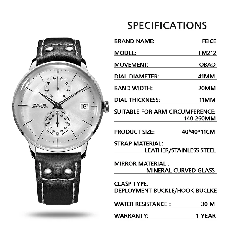 The FEICE FM212 offers a harmonious blend of form and function, providing numerous advantages for its wearer. Experience the freedom from battery changes, embracing a watch that truly lives and breathes with you. Its robust construction and water resistance provide peace of mind, allowing you to wear it confidently through your daily routine without concern for minor splashes. The versatile design transitions effortlessly from business attire to casual elegance, making it the perfect accessory for any occasion, from important meetings to relaxed social gatherings. The unique domed mirror not only adds to its aesthetic appeal but also offers a subtle nod to classic watchmaking, setting it apart from conventional timepieces. This watch is an ideal choice for personal indulgence or as a thoughtful gift that speaks volumes about taste and sophistication.