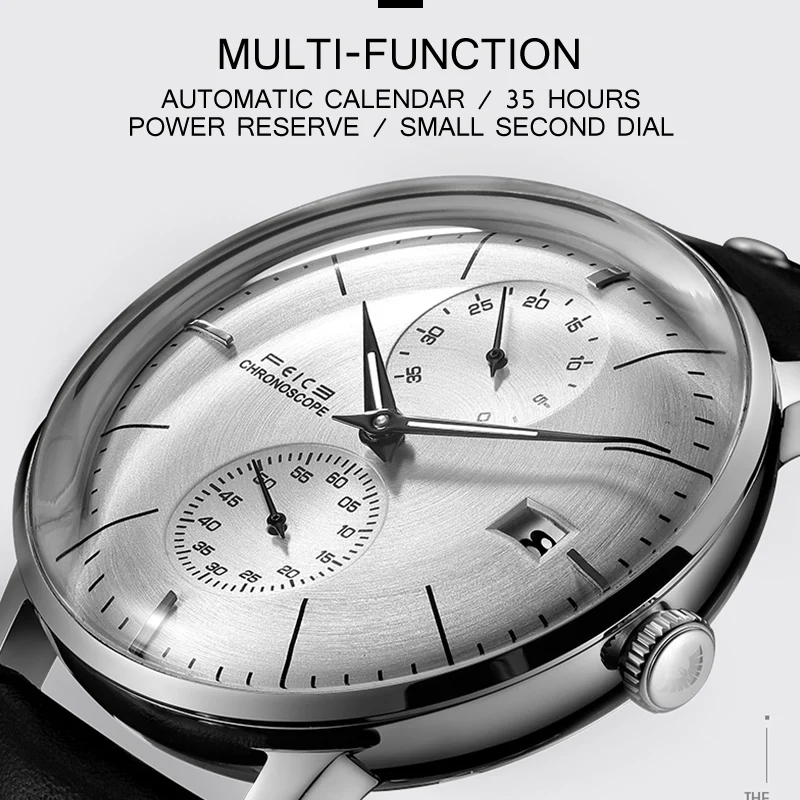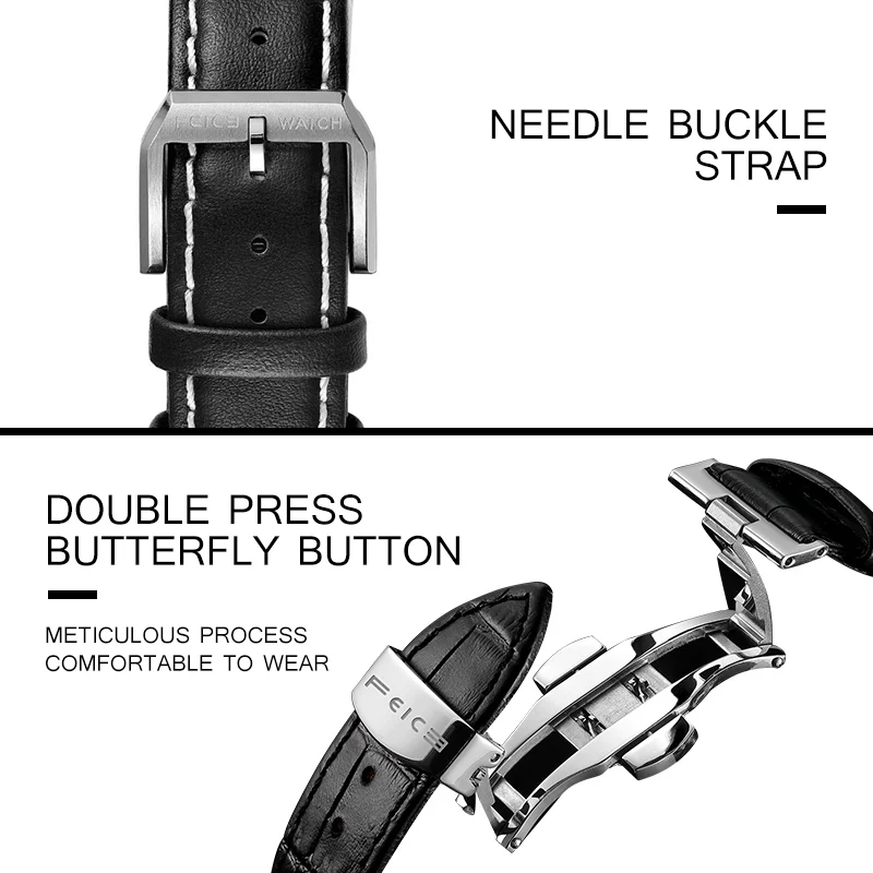 Your FEICE automatic watch is a precision instrument. To ensure its longevity, gently wind it if unworn for more than 35 hours. Keep it away from strong magnets to prevent interference with the movement. For cleaning, a soft, dry cloth is sufficient.