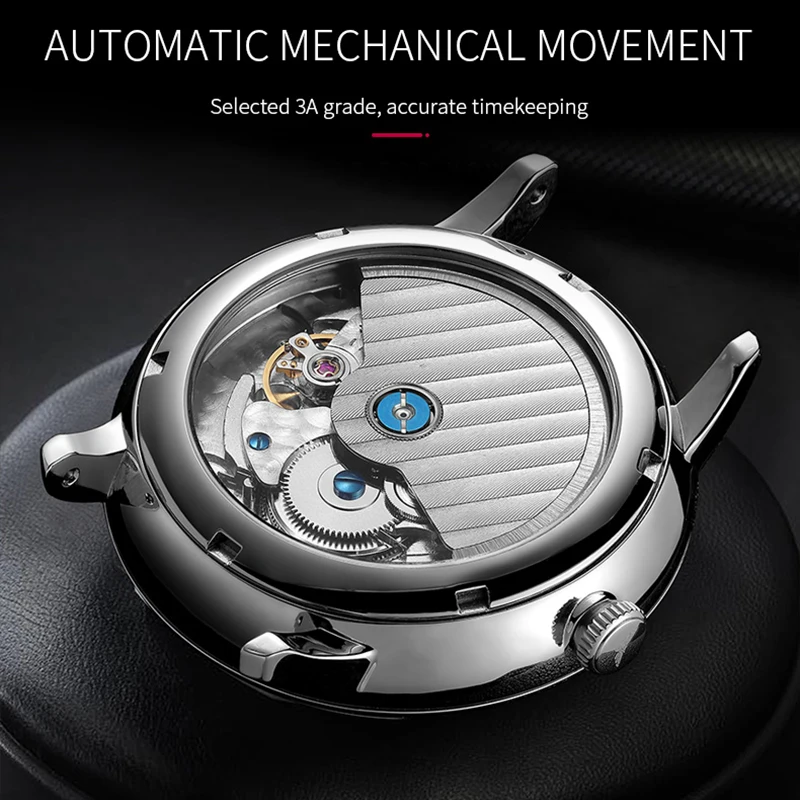 – Automatic Mechanical Movement: Self-winding, eliminating the need for batteries and powered by your natural motion.