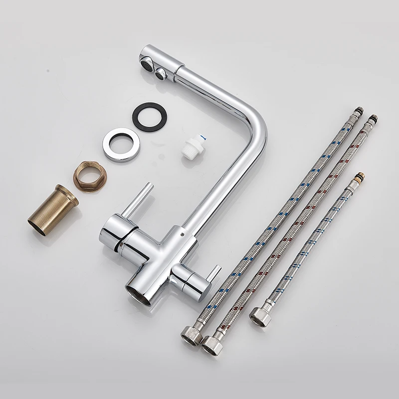h1 Filter Kitchen Faucet Chrome Drinking Pure Water Kitchen Tap Deck Mounted Dual Handles 3-Ways Hot and Cold Water Mixer
