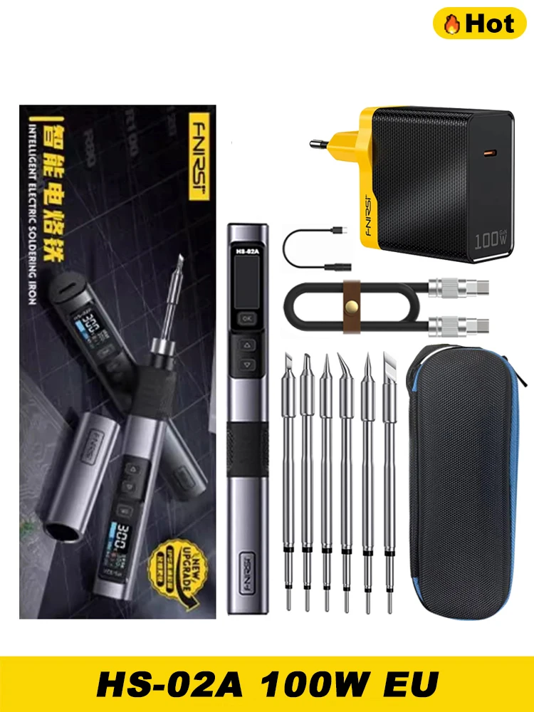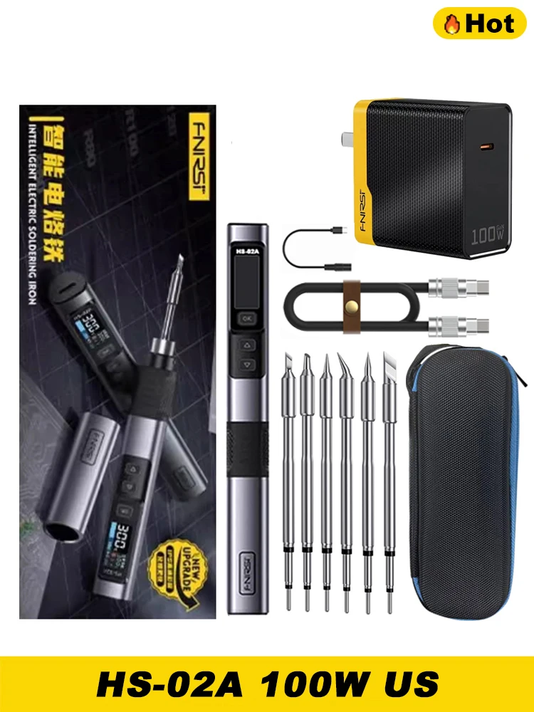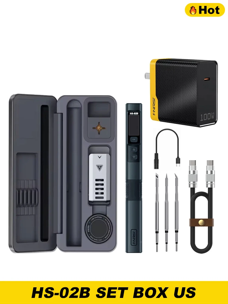 Introducing the FNIRSI HS-02, a cutting-edge smart soldering rework station designed for professionals and serious hobbyists alike. This portable powerhouse combines intelligent temperature control, a vibrant IPS color display, and robust PD100W power delivery to offer an unparalleled soldering experience. Whether you're performing intricate electronic repairs, assembling delicate circuits, or tackling larger rework projects, the HS-02 delivers the precision, efficiency, and portability you need to excel.