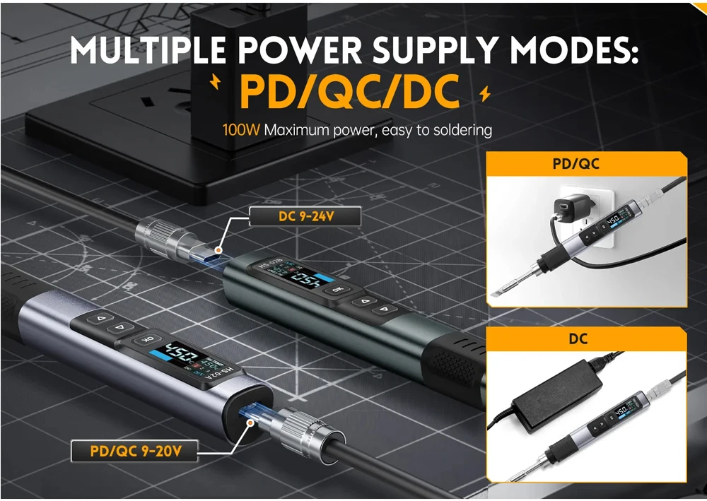 - PD100W Power Delivery: Utilizes the latest Power Delivery technology for rapid heating and stable, consistent power output, ensuring efficient soldering.