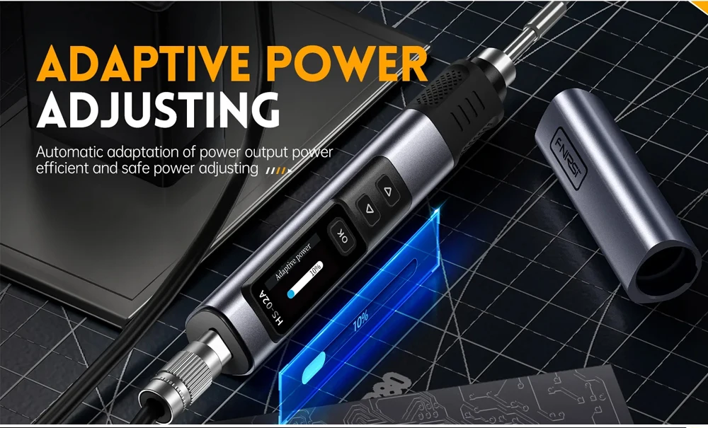 Elevate your soldering experience with the FNIRSI HS-02 Smart Soldering Station, a cutting-edge repair tool designed for professionals and hobbyists alike. This portable powerhouse combines intelligent features with a vibrant IPS color display, offering unparalleled control and precision for all your soldering and rework needs. Whether you're working on intricate electronics, performing delicate repairs, or tackling larger projects, the HS-02 delivers exceptional performance in a compact and user-friendly package.