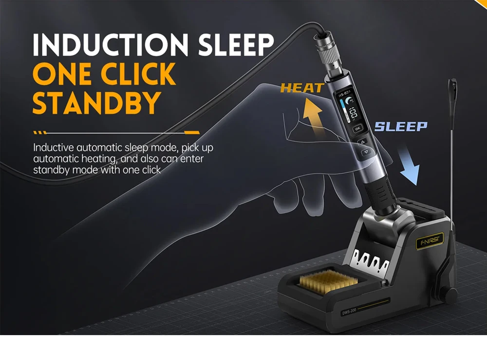 The FNIRSI HS-02 empowers you with greater precision and efficiency. The smart sleep feature not only saves power but also enhances safety by reducing the risk of accidental burns or damage to components when the iron is not in use. The vivid IPS display makes it effortless to select and monitor the exact temperature required for specific tasks, from fine-pitch component soldering to desoldering larger joints. Its PD100W capability means you'll experience quick heat-up times, minimizing downtime and maximizing your productivity.