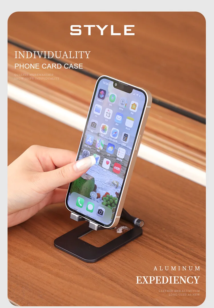 Introducing the Folding Aluminum Phone Stand, a sleek and sturdy solution designed to securely hold your smartphone on any flat surface. Engineered for universal compatibility, this metal phone holder offers reliable support for devices from leading brands including iPhone, Samsung, Huawei, and Xiaomi. Its compact, foldable design ensures portability without compromising stability, making it an essential accessory for both home and office use.