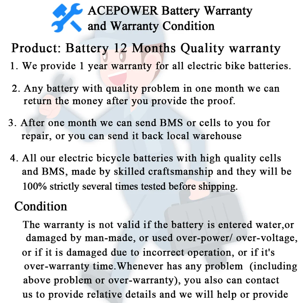 Crafted with high-quality materials to withstand daily use and environmental factors, this battery requires minimal maintenance. For longevity, charge with the recommended charger and avoid exposure to extreme temperatures. This product is ideal for riders seeking reliable, long-lasting power solutions to enhance their electric biking experience.