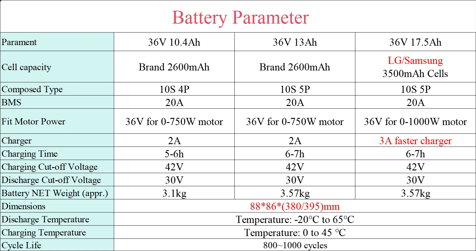 – Available capacities: 10.4 Ah, 13 Ah, and 17.5 Ah, offering options to suit different range requirements