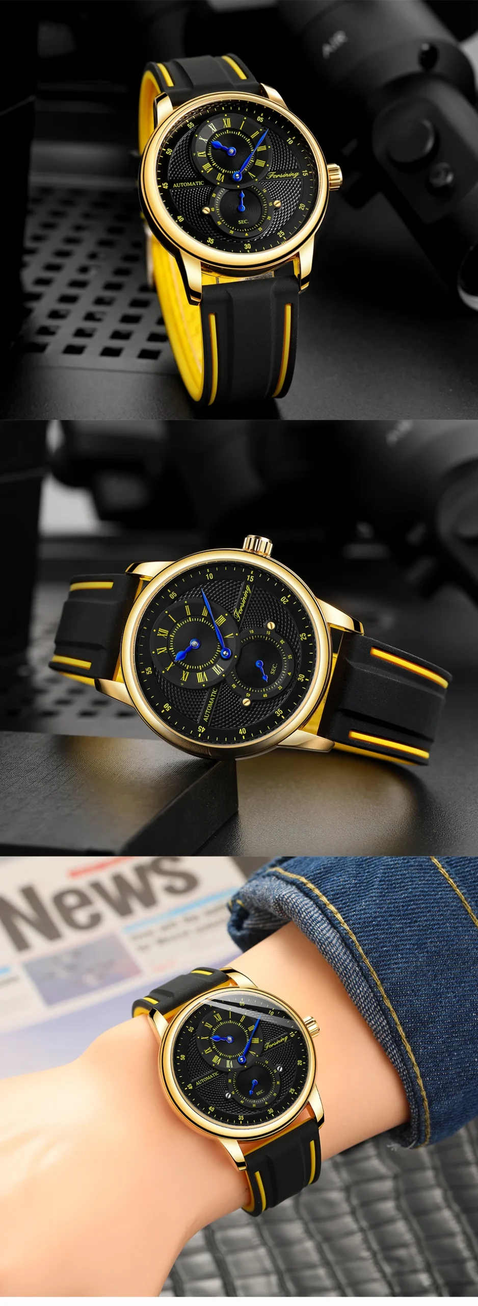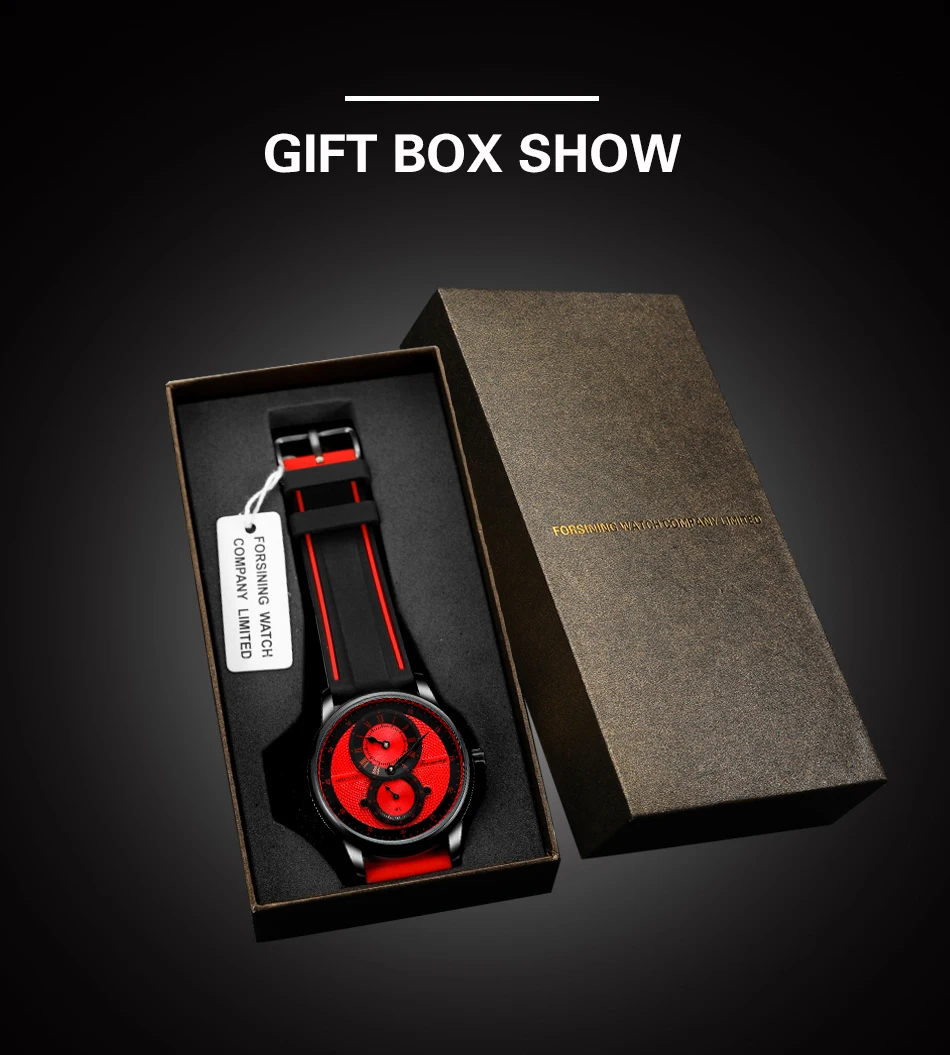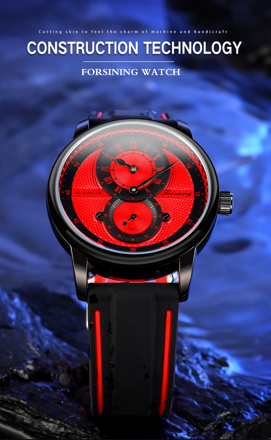 This FORSINING watch is meticulously crafted to offer an unparalleled wearing experience. The automatic movement ensures a continuous flow of power, embodying the heritage of mechanical watchmaking. The supple yet resilient red silicone strap provides exceptional comfort for all-day wear, making it ideal for both active lifestyles and sophisticated gatherings.