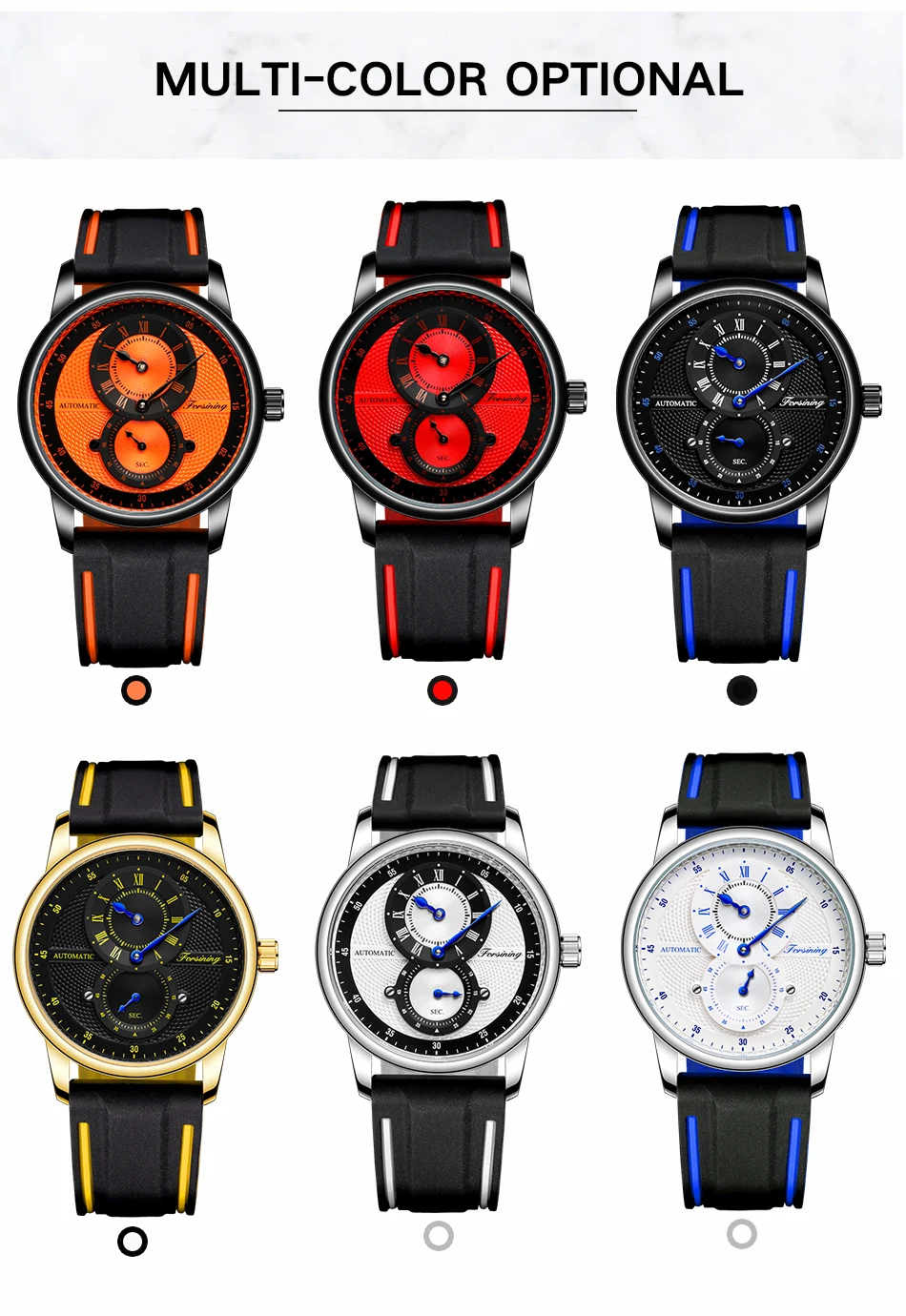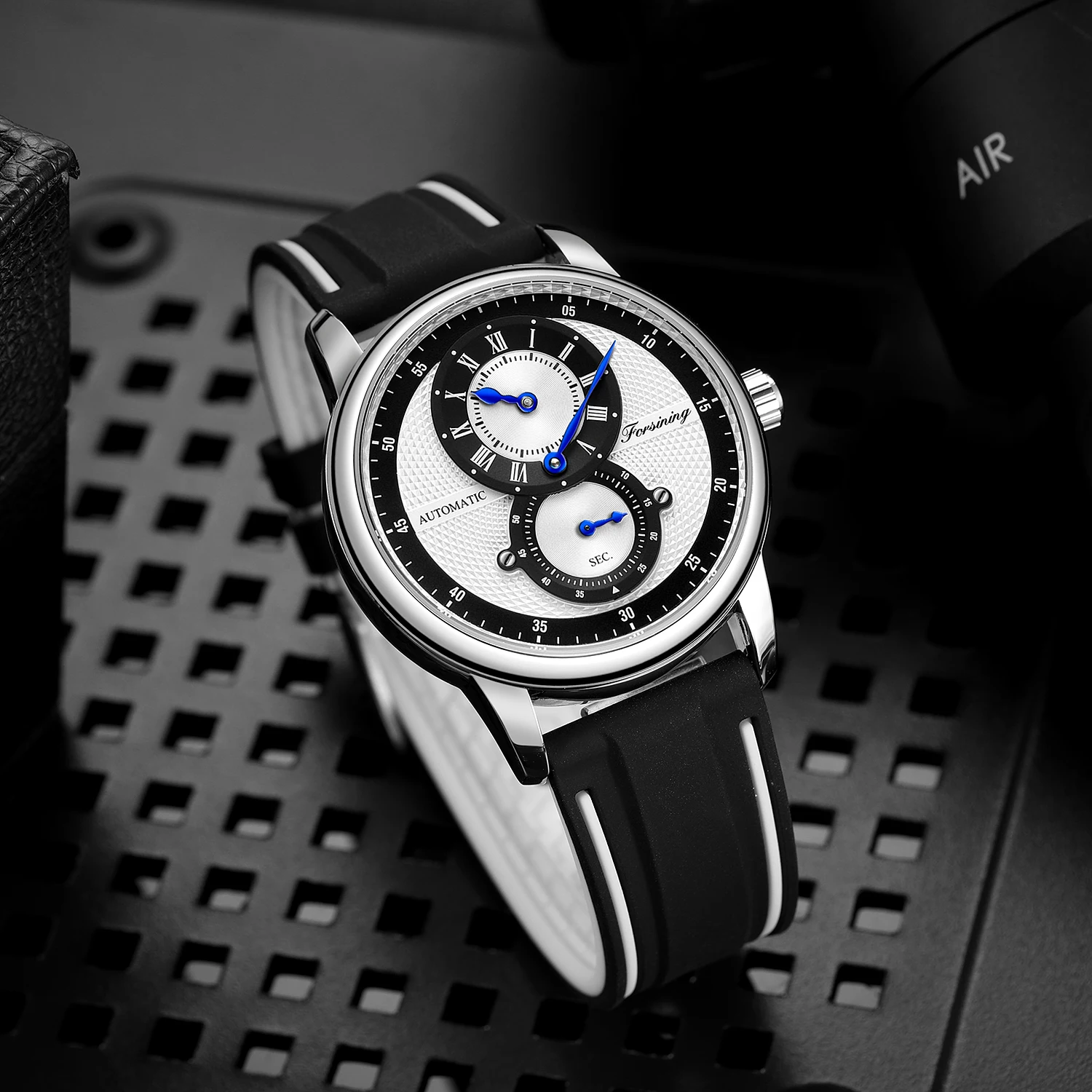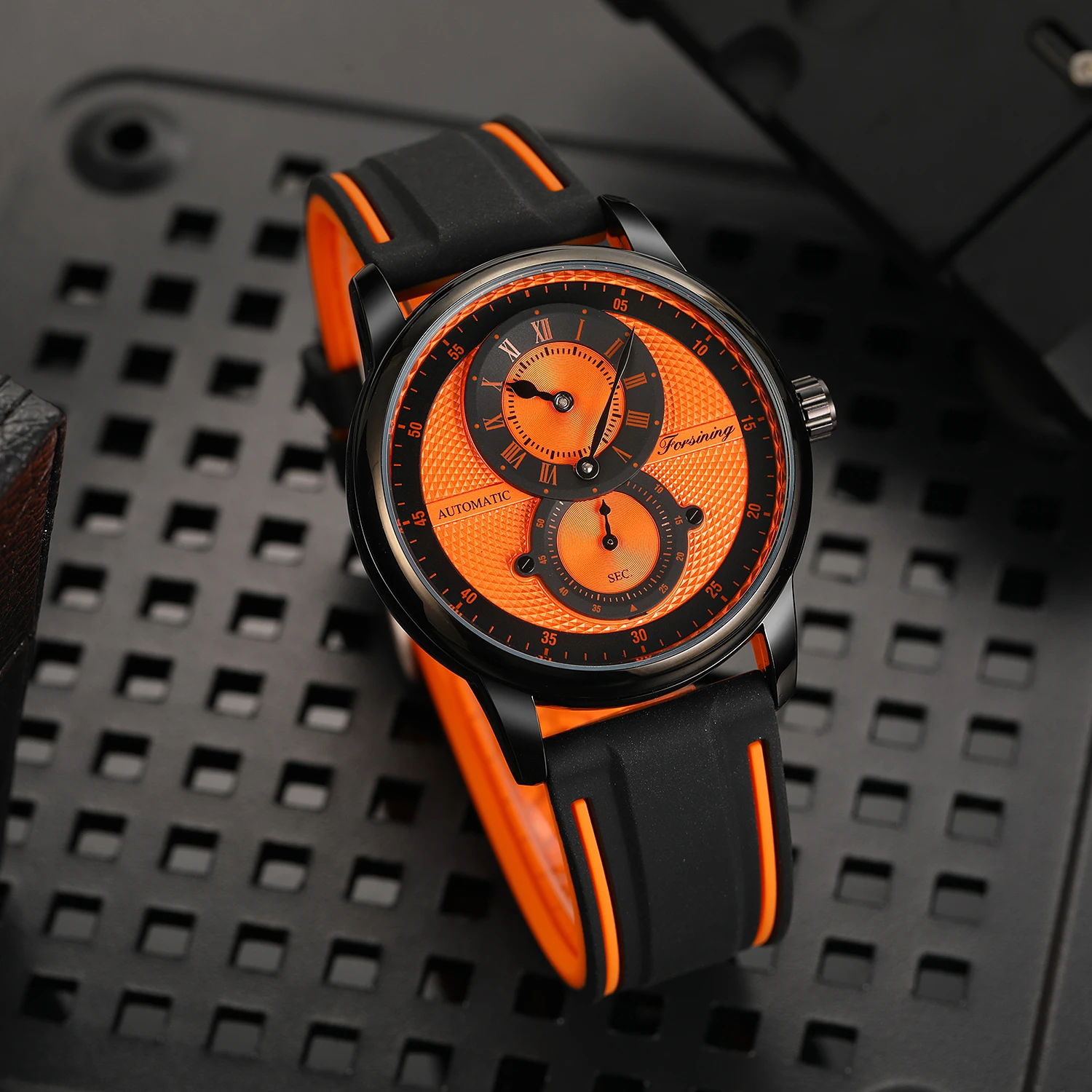 Introducing the FORSINING Automatic Luxury Casual Fashion Men's Watch, a statement piece designed for the discerning individual who values both sophisticated aesthetics and reliable mechanical engineering. This timepiece is more than just an accessory; it's a testament to timeless craftsmanship and contemporary design, perfect for adding a touch of refined elegance to your everyday ensemble or making a bold impression on special occasions. Experience the seamless fusion of luxury, comfort, and precision.