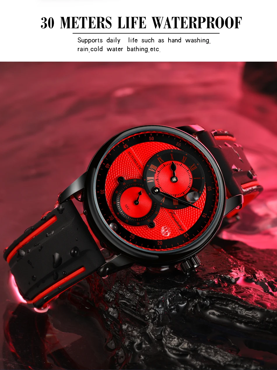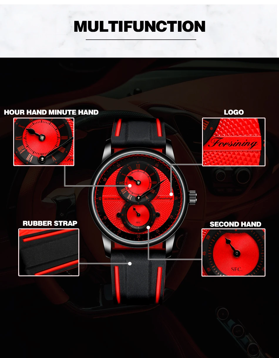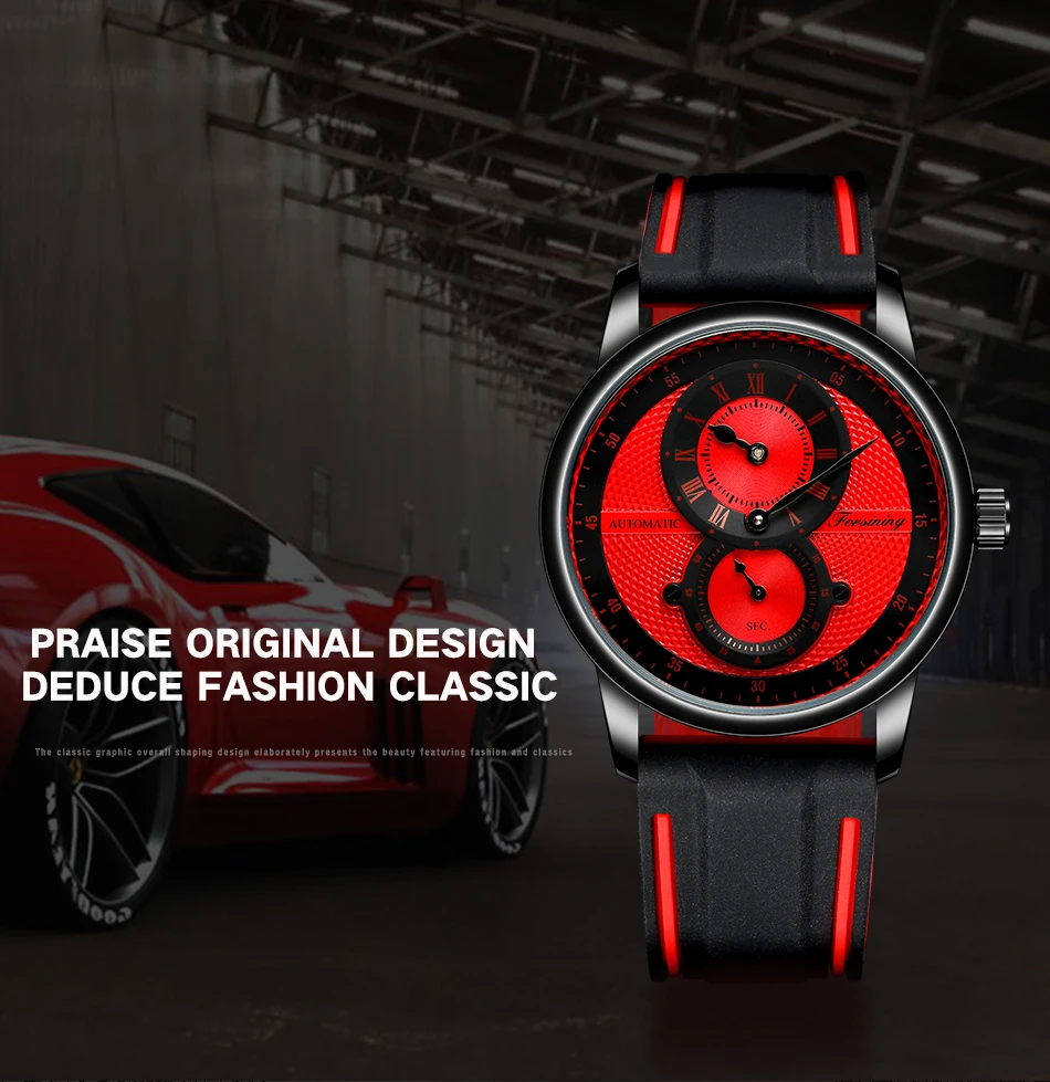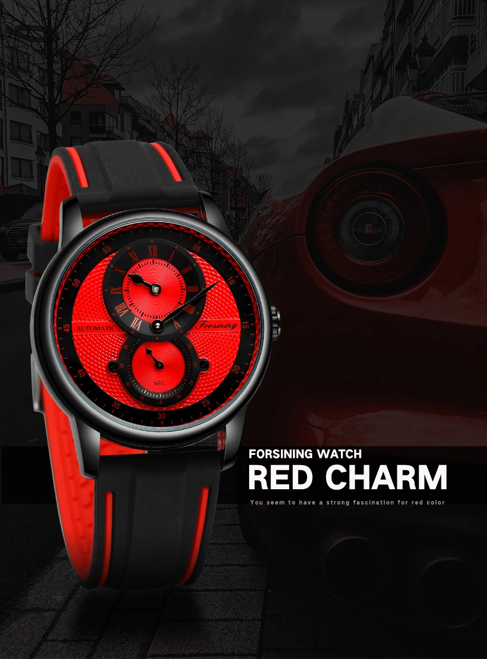 H1: FORSINING Automatic Luxury Casual Fashion Men's Watch – Bold Red Silicone