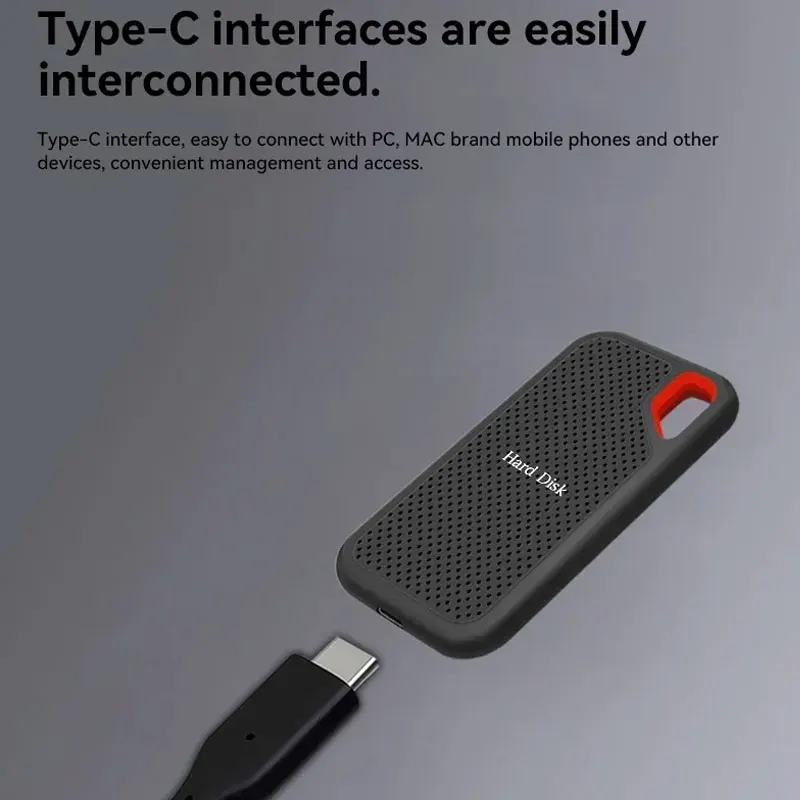 Discover the power of high-speed data transfer and expansive storage capacity with the Genuine High-speed Portable SSD. Designed to meet the demands of professionals, creatives, and everyday users, this external solid-state drive offers a seamless way to store, access, and transport large files. Compatible with laptops, MACs, and PCs, it ensures your data is always within reach, whether you’re working remotely or on the go.