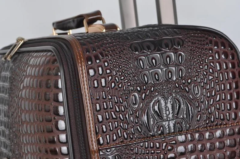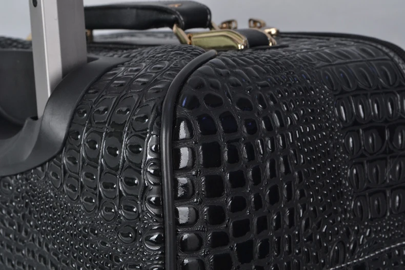 Available in classic Brown and sophisticated Black, our Genuine Leather Crocodile Pattern Travel Luggage is designed to complement any wardrobe. We recommend occasional conditioning with a leather protector to maintain the suppleness and rich appearance of the genuine leather. Avoid exposing the luggage to excessive moisture or direct sunlight for prolonged periods. This collection is ideal for business travelers, fashion-conscious individuals, and anyone who desires a blend of luxury, durability, and impeccable style in their travel gear. Invest in a piece that speaks volumes about your taste and elevate every journey.