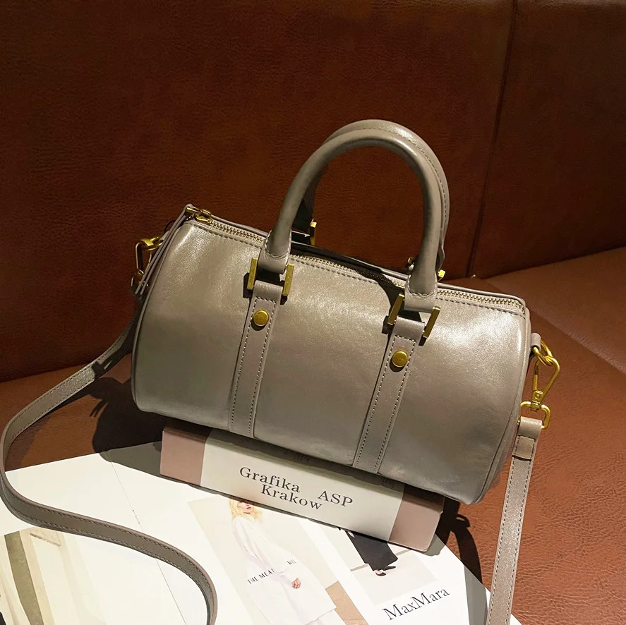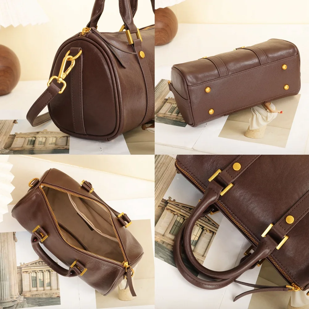 Genuine Leather Vintage Handbag Women Boston Bag Crossbody Bag Cowhide Purse