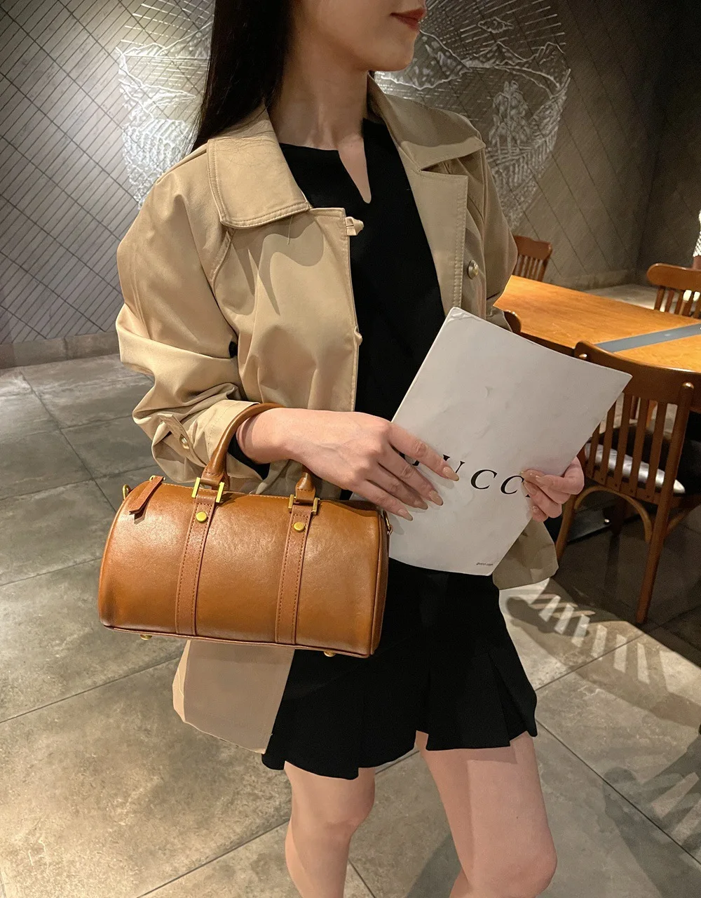 – Classic metal hardware accents enhancing the bag’s refined aesthetic