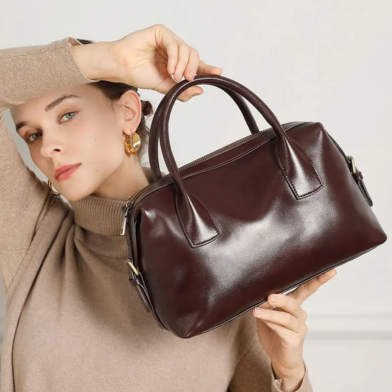 Genuine Leather Women’s Bag Vintage Luxury Designer Boston Handbag