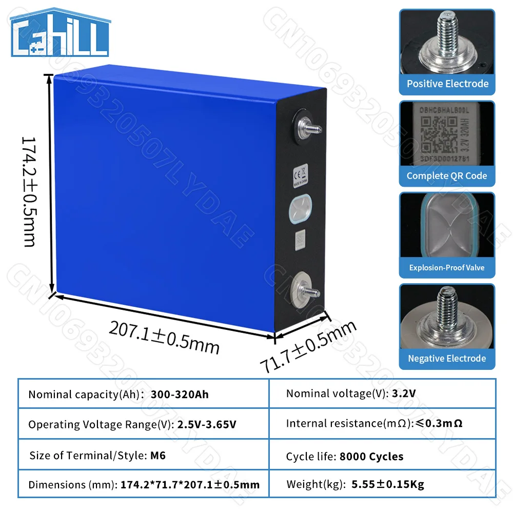 Grade A 8000 Cycle 320 Ah LiFePO4 Battery 3.2 V Lithium Iron Phosphate Rechargeable Cell